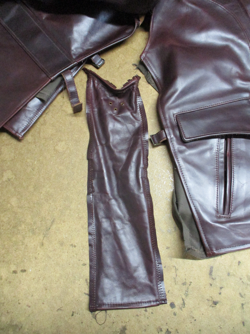 15枚目は脇から袖先にかけてレザーをカットした写真です。
