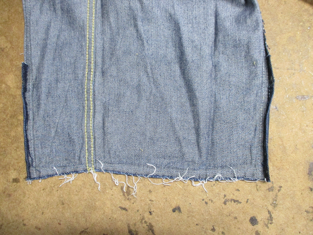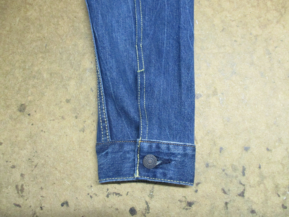 リーバイスの長い袖丈のGジャンをお客さんの好みの長さに短くリサイズしていきます。