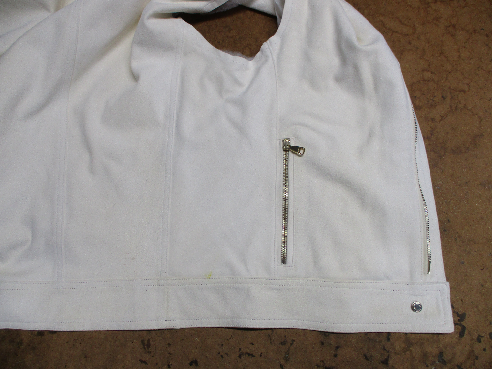汚れて縮みだした襟と袖と腰回りのリブニットの付いたジャケットをお客さん…