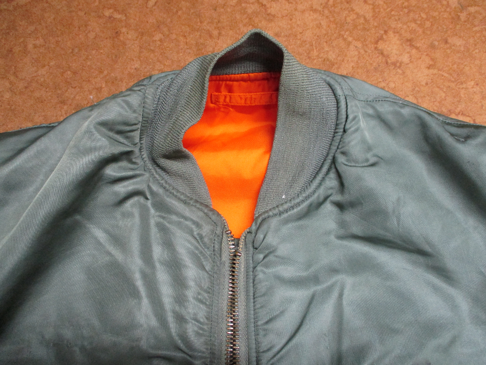 1枚目は来店されたお客さんの襟、両袖、腰回りを交換していく前のMA-1フライトジャケットです。