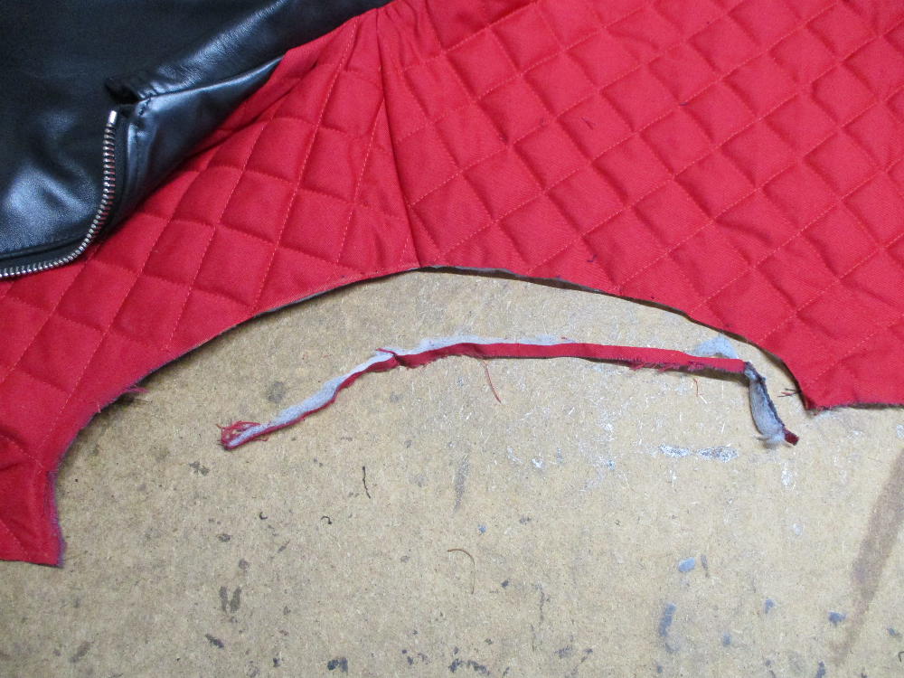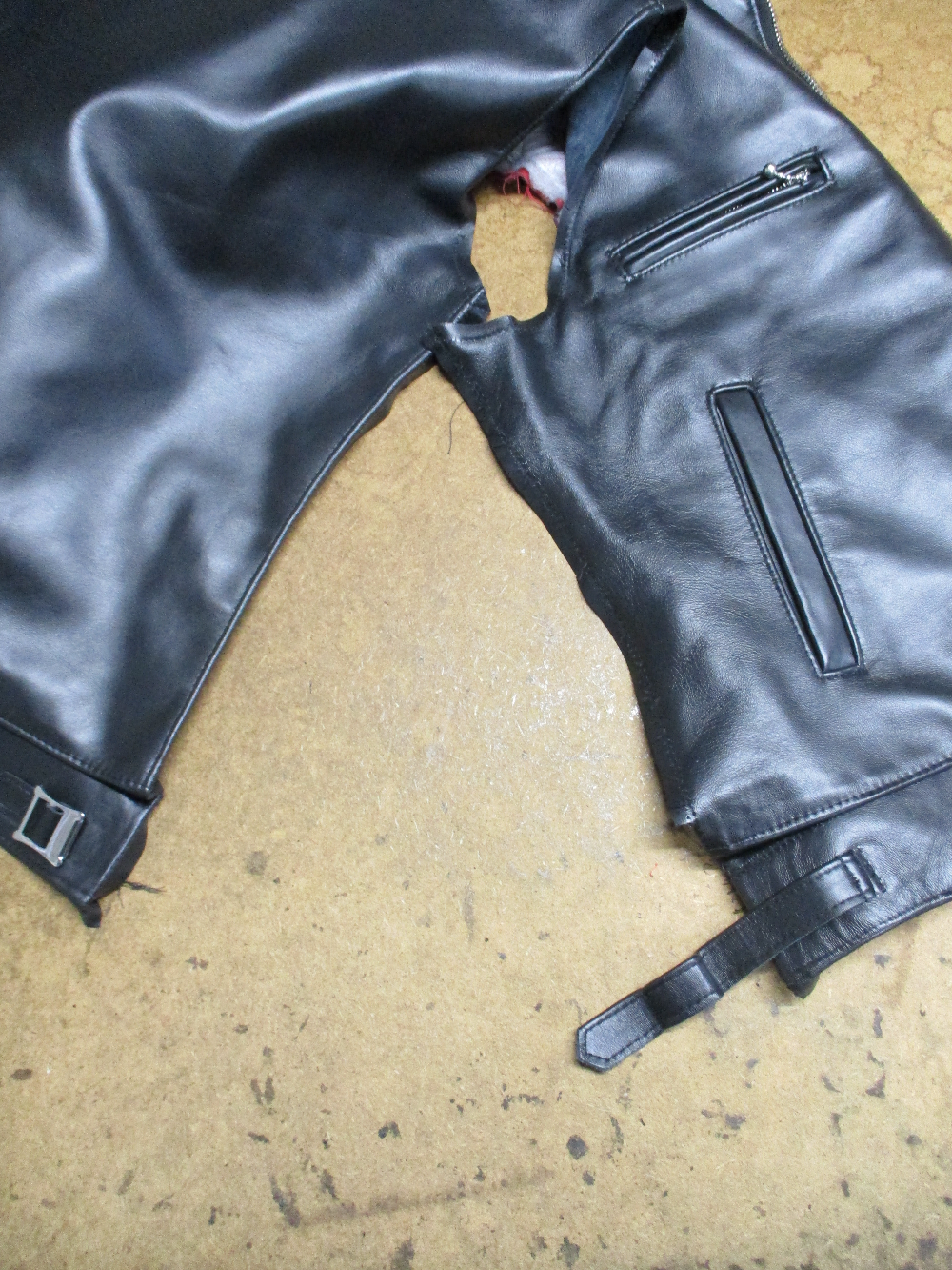 7枚目は脇から裾のサイドのレザーをカットしていく前の写真です。