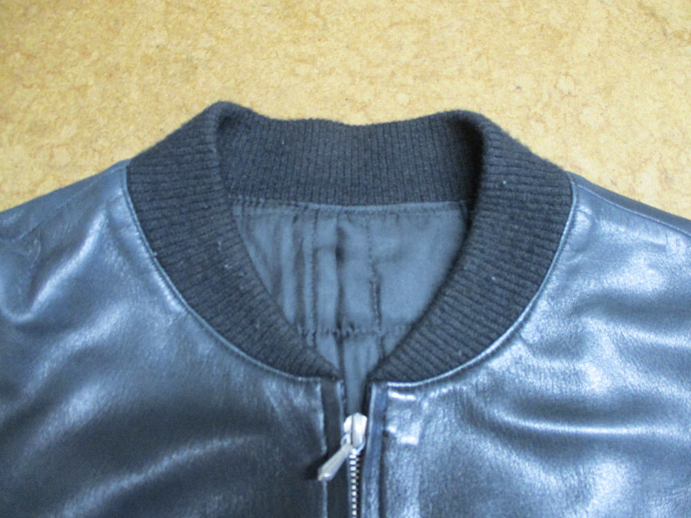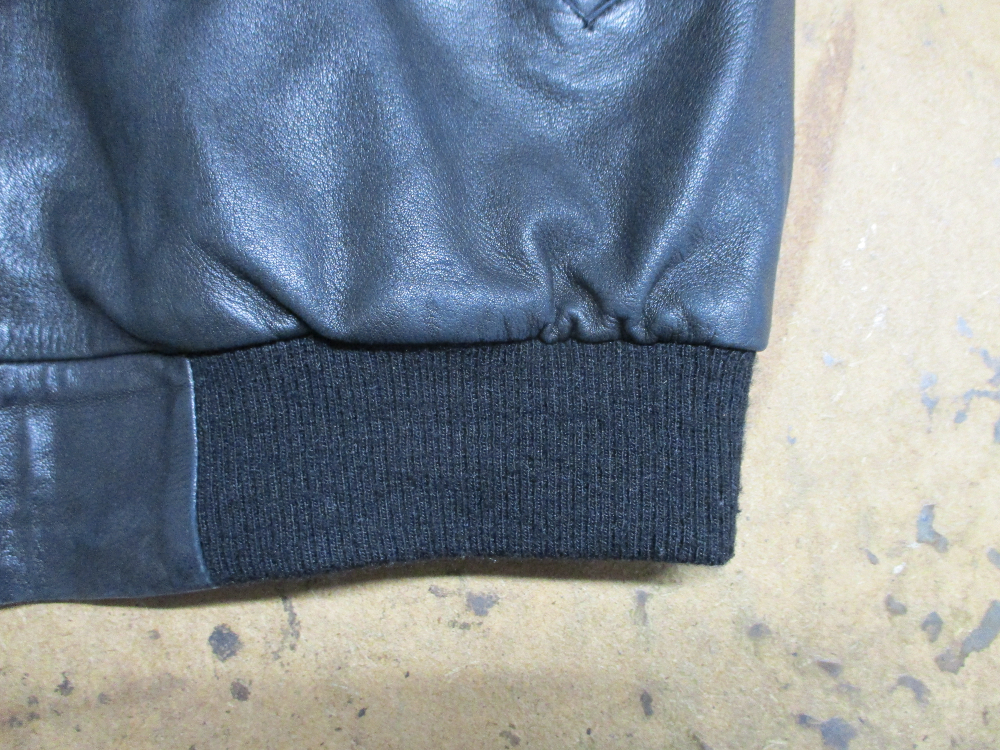 3枚目はレザージャケットの元々付いてる襟、両袖、腰回りのリブニットの写真です。