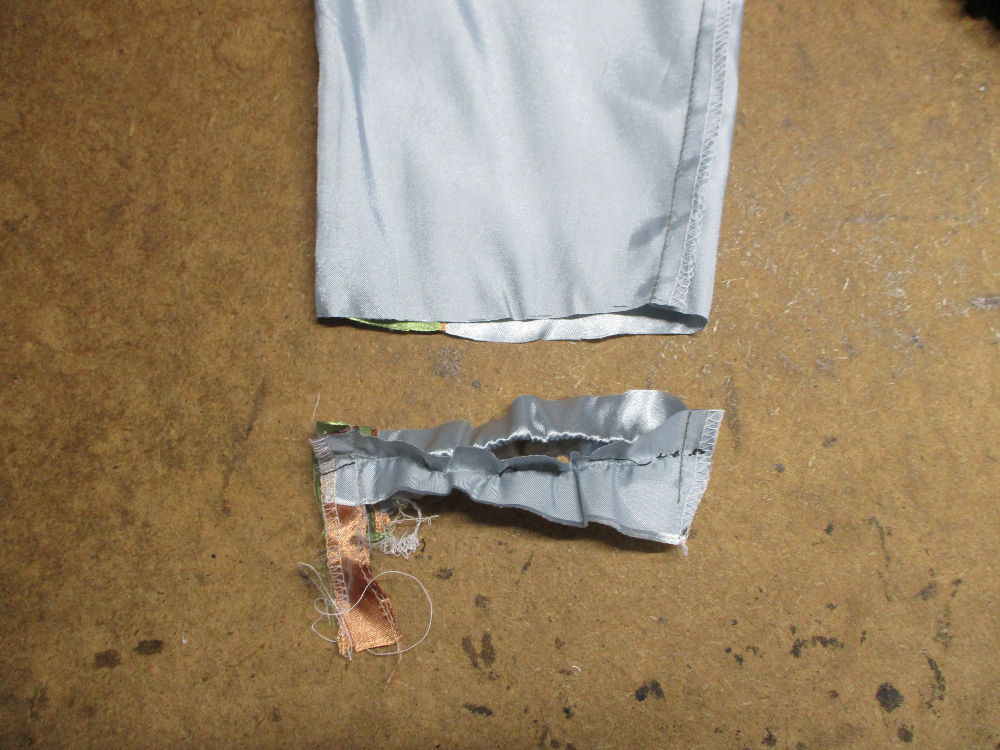 13枚目は表側の脇から裾のサイドの生地をカットした写真です。