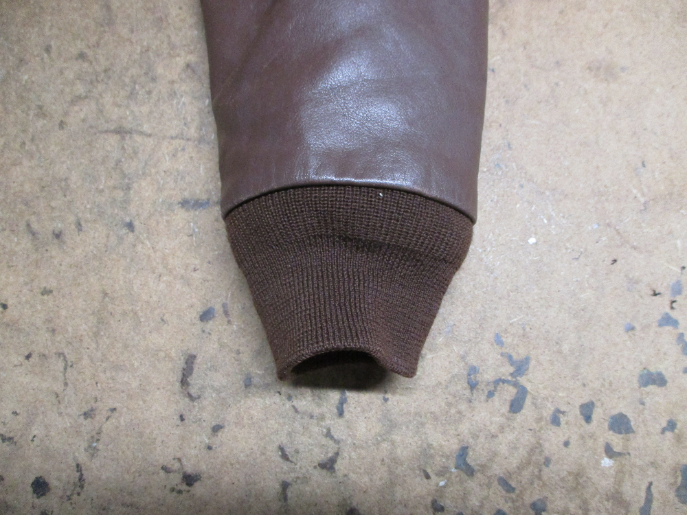 21枚目はA-2フライトジャケットに新しく両袖、腰回りのリブニットを取り付けた写真です。