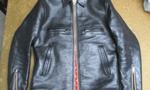 ルイスレザーのサイクロンの長い袖丈を短く直していきます。今回は来店されたお客さんで取りに来れないとのことで京都府に作業終了後に荷物を送ることになりました…