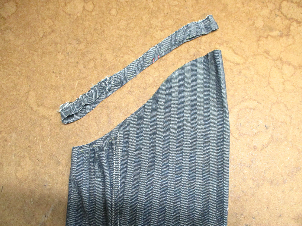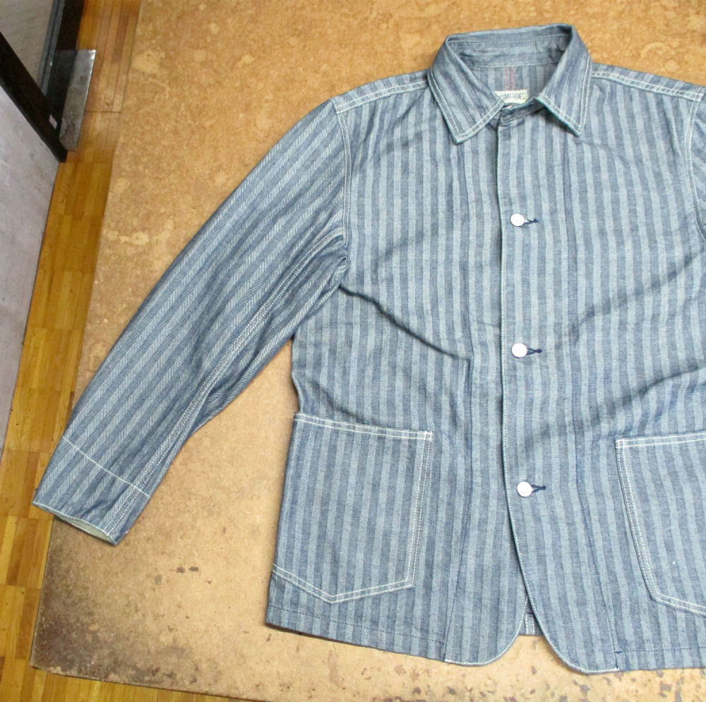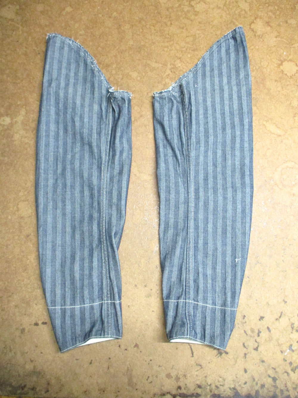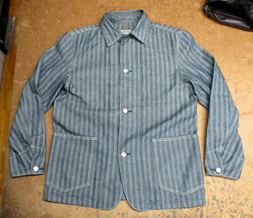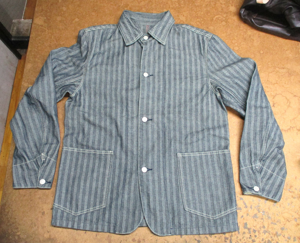 1枚目は兵庫県からの郵送のお客さんの長い袖やけを短くしていく前のカバーオールです。