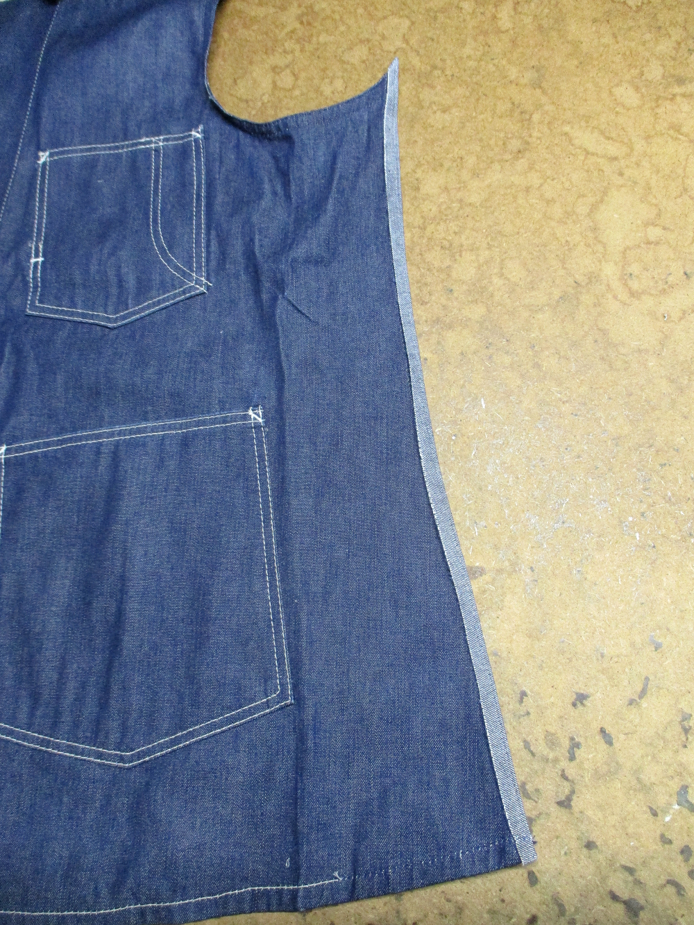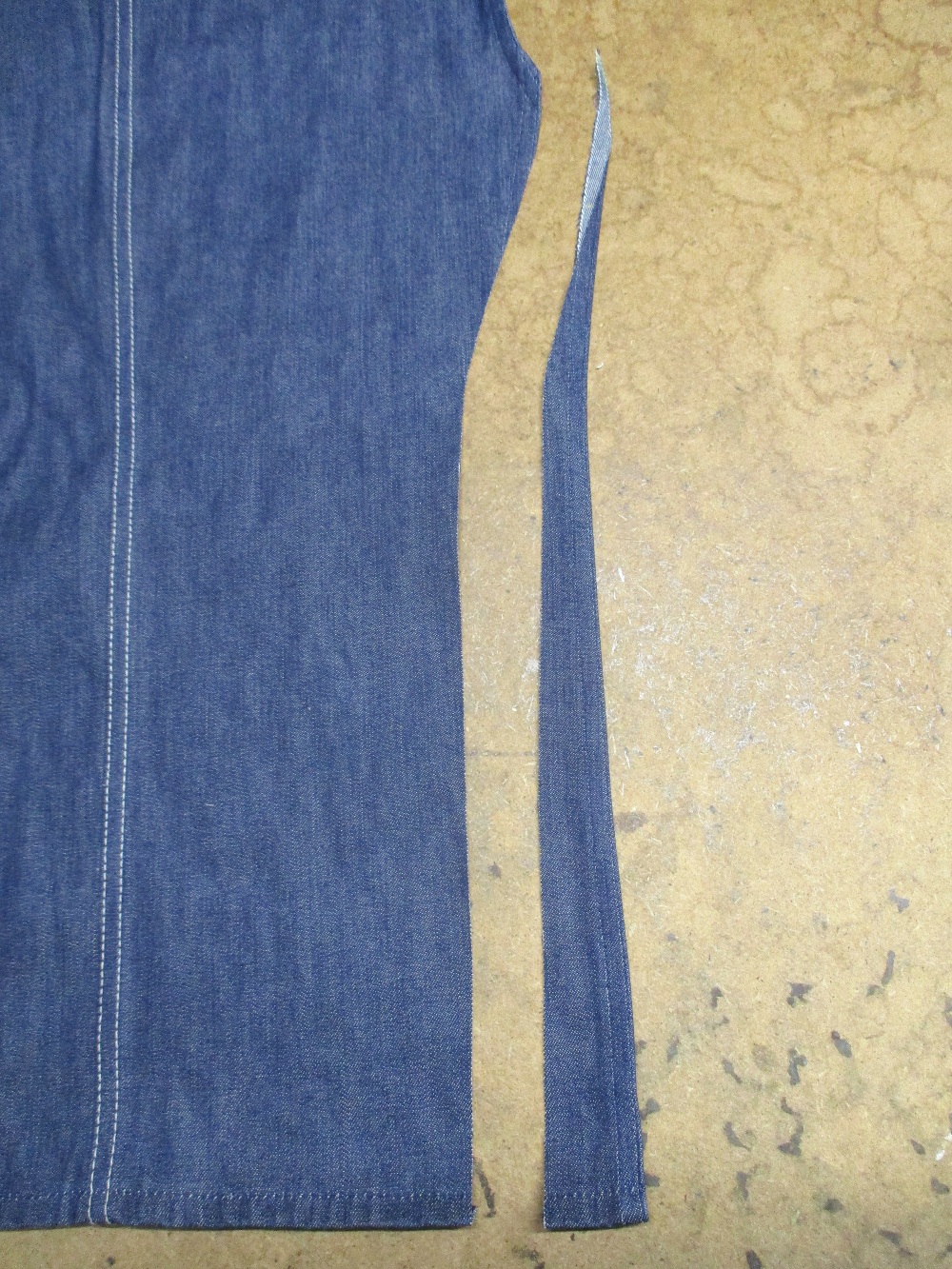 6枚目は前身ごろの脇から裾のサイドの生地をカットした写真です。