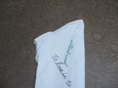 今回は広島県からの郵送のお客さんで荷物と一緒にメモに袖丈を肩口から可能な限り短くしたいことが書いてありました。
