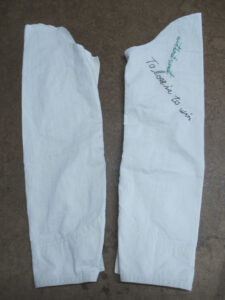 3枚目は胴体のアームホールの縫い目から取り外した左右の袖のパーツです。