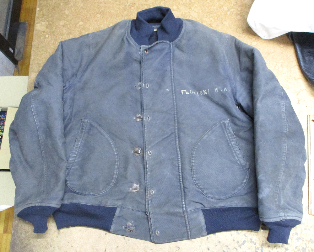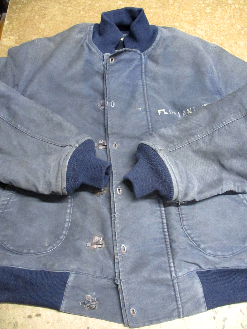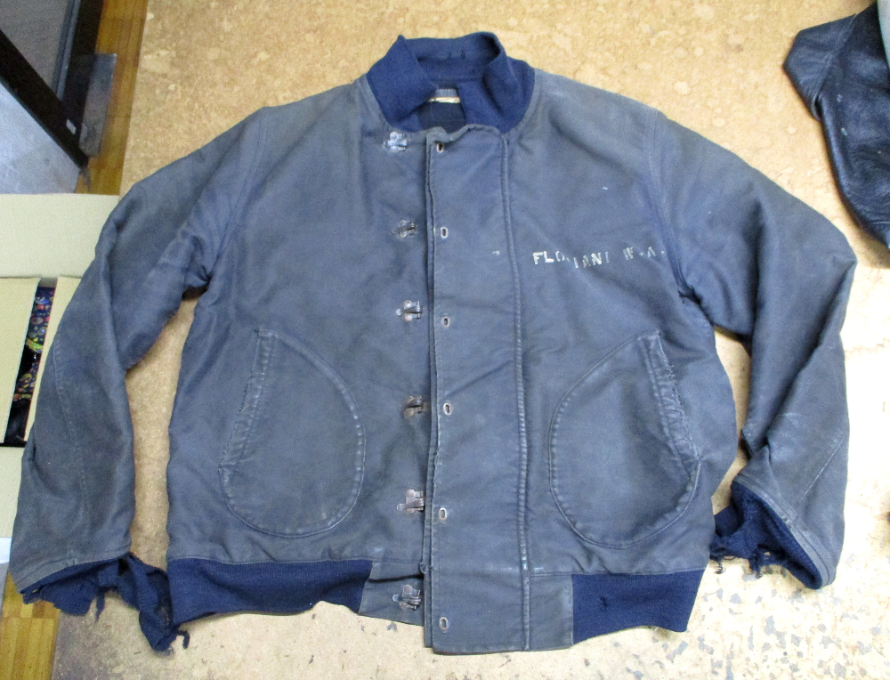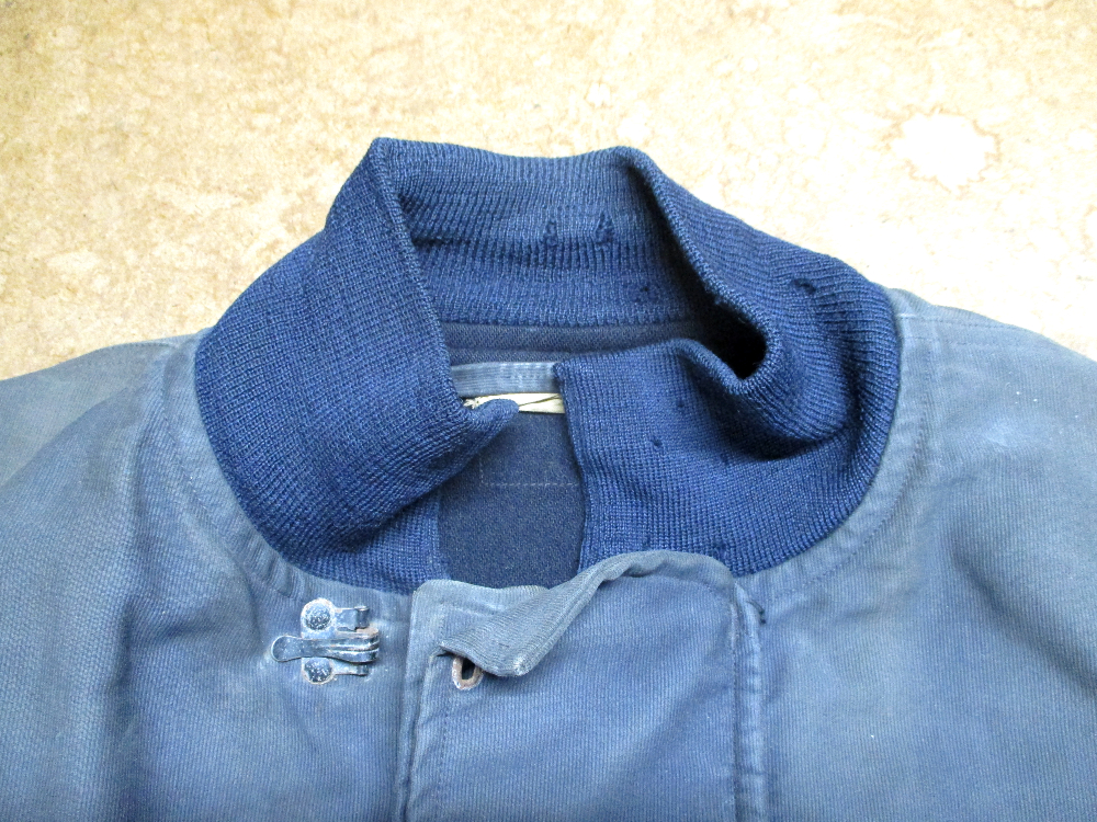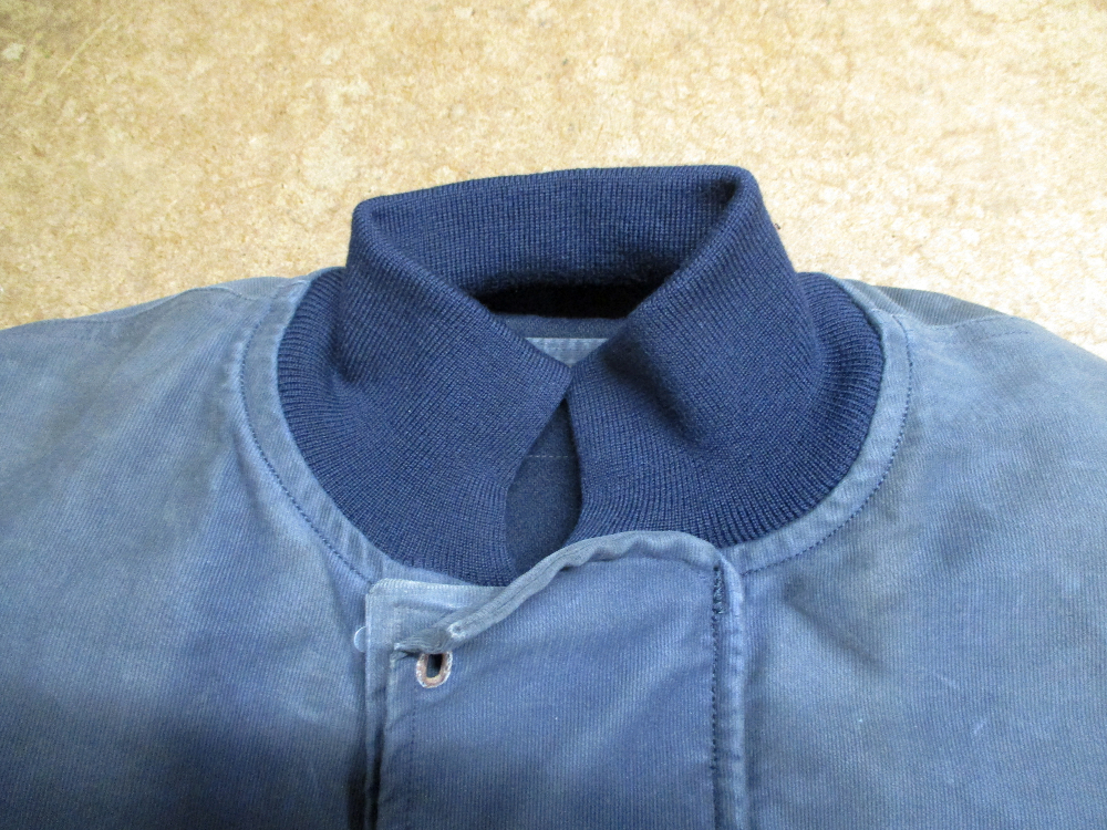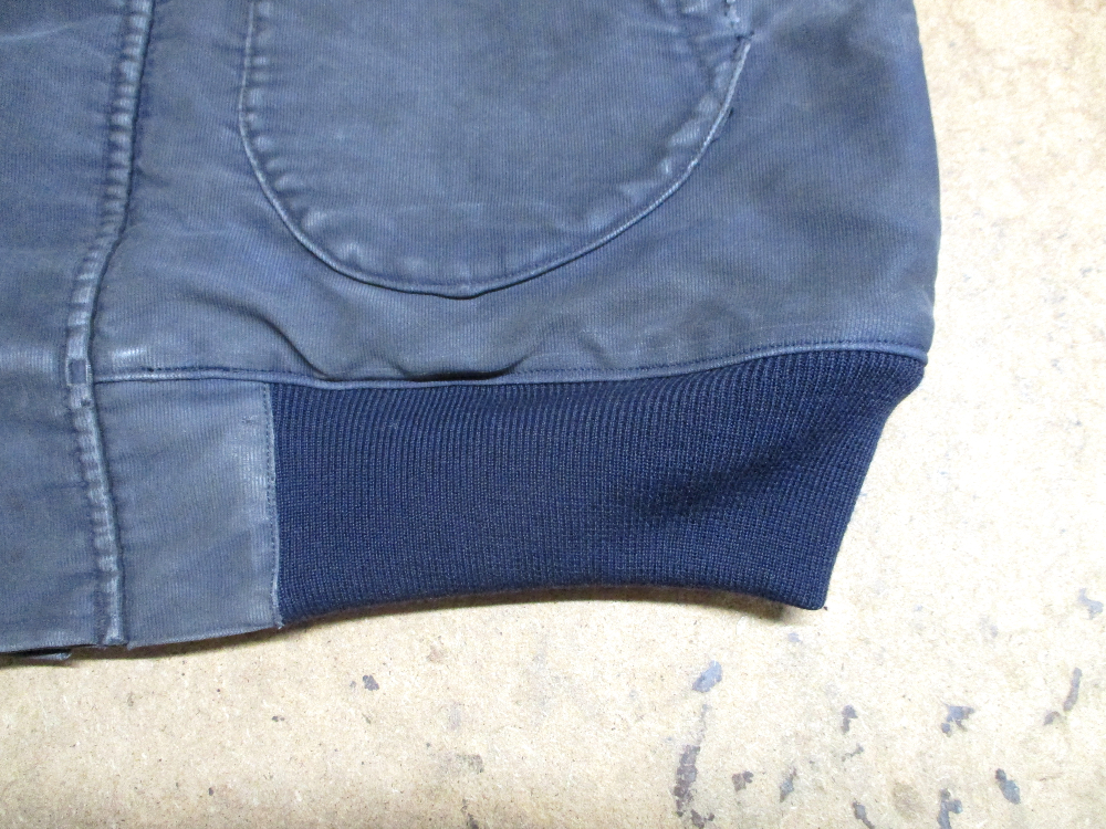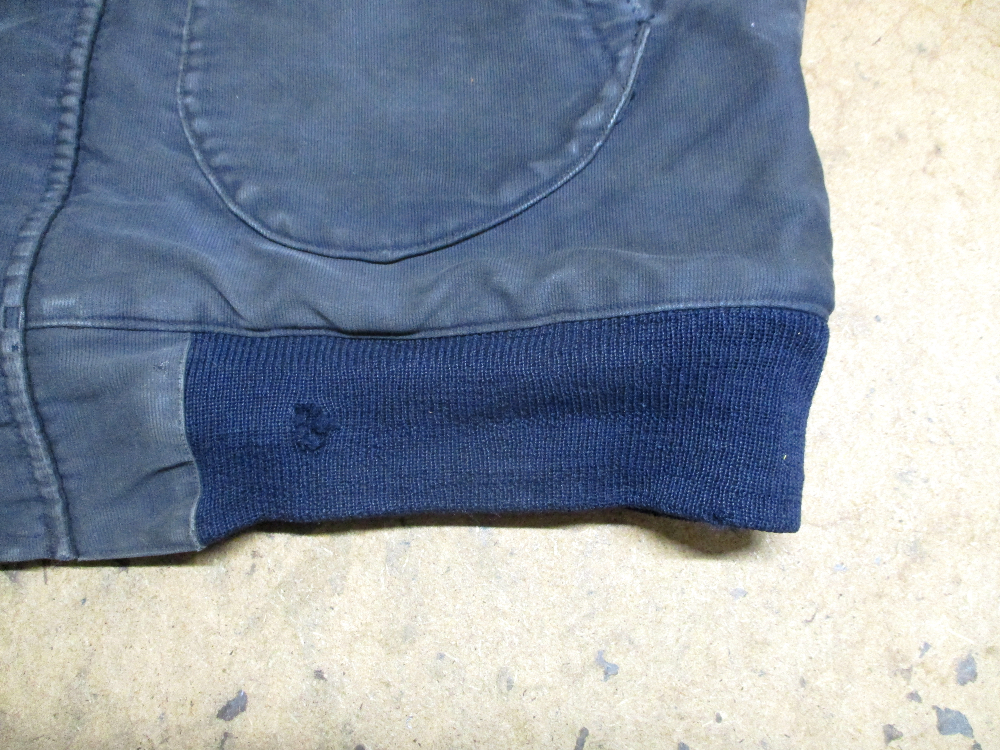 1枚目は来店されたお客さんの襟、両袖、腰回りのリブニットを交換していく前のM-43デッキジャケットです。