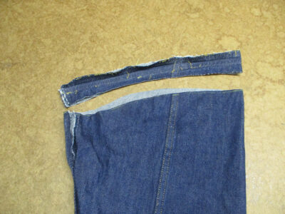 4枚目は袖山のデニム生地をカットして袖丈を短く仕上げていきます。