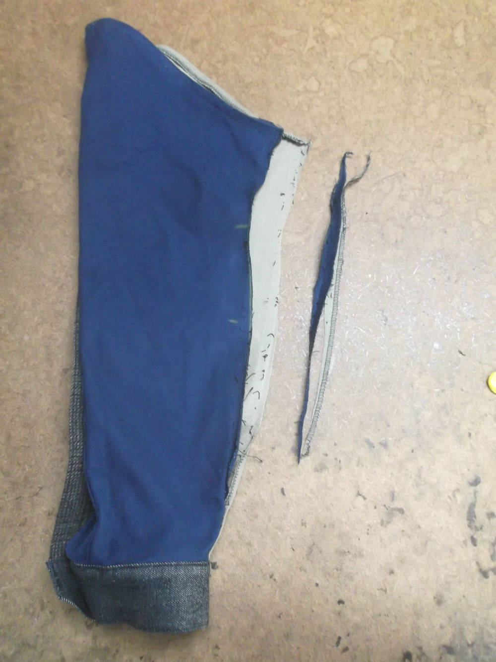 3枚目は左右の袖のパーツを外して裾の帯も外して胴体の前身ごろの脇から裾のサイドの生地をカットしていく前の写真です。