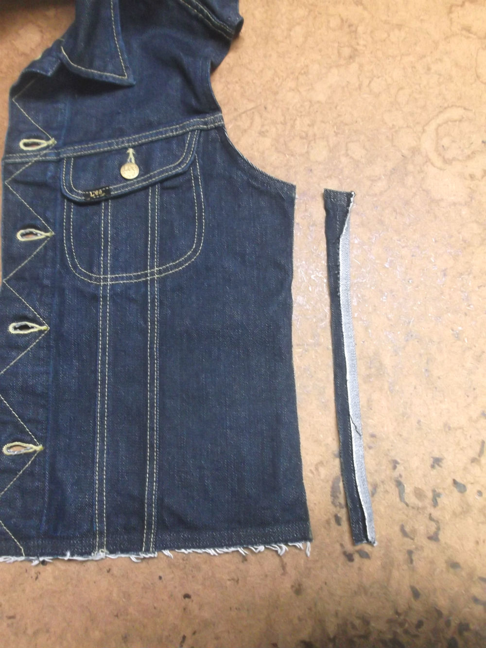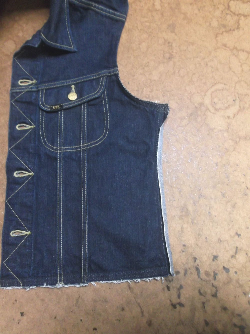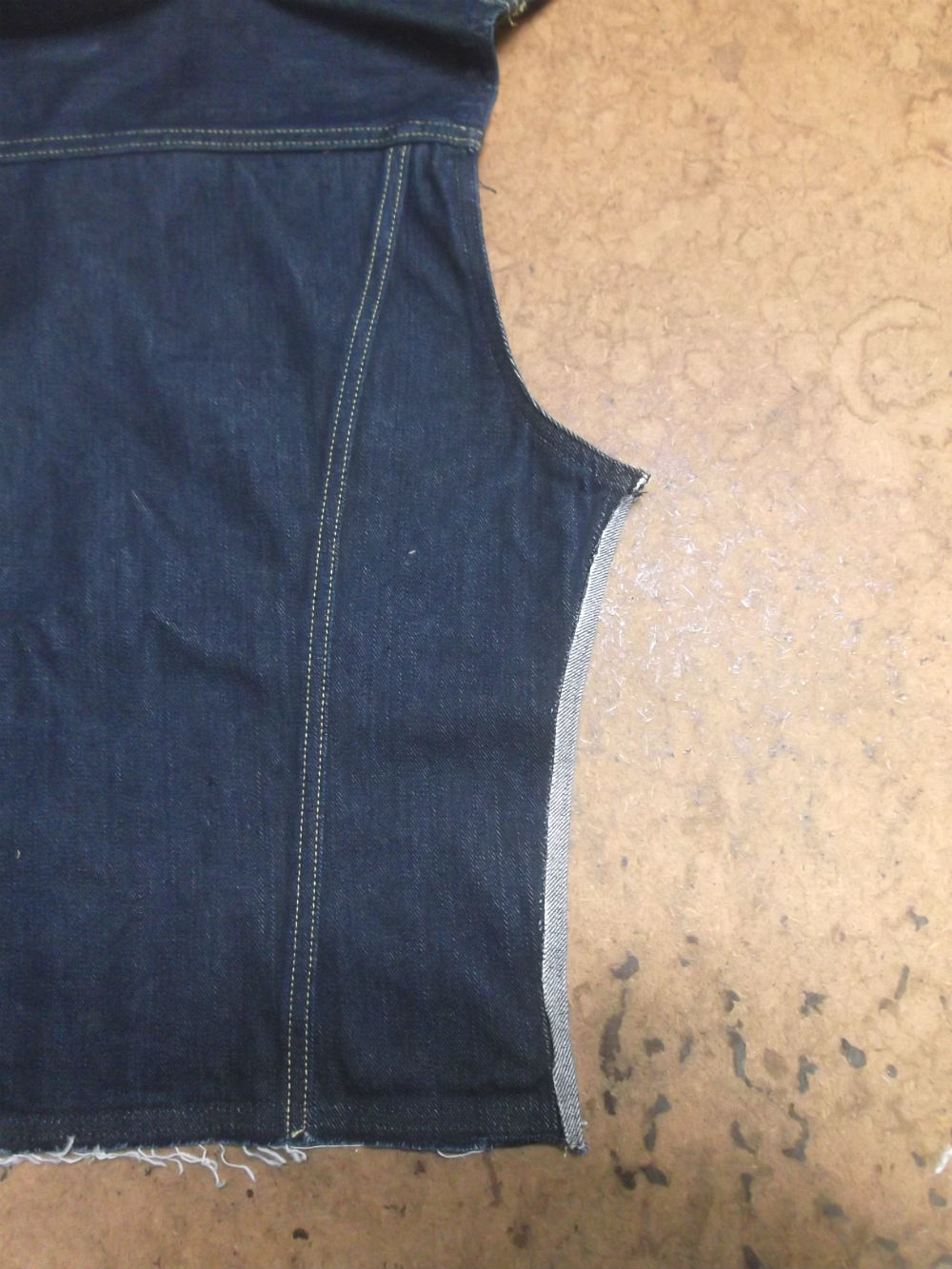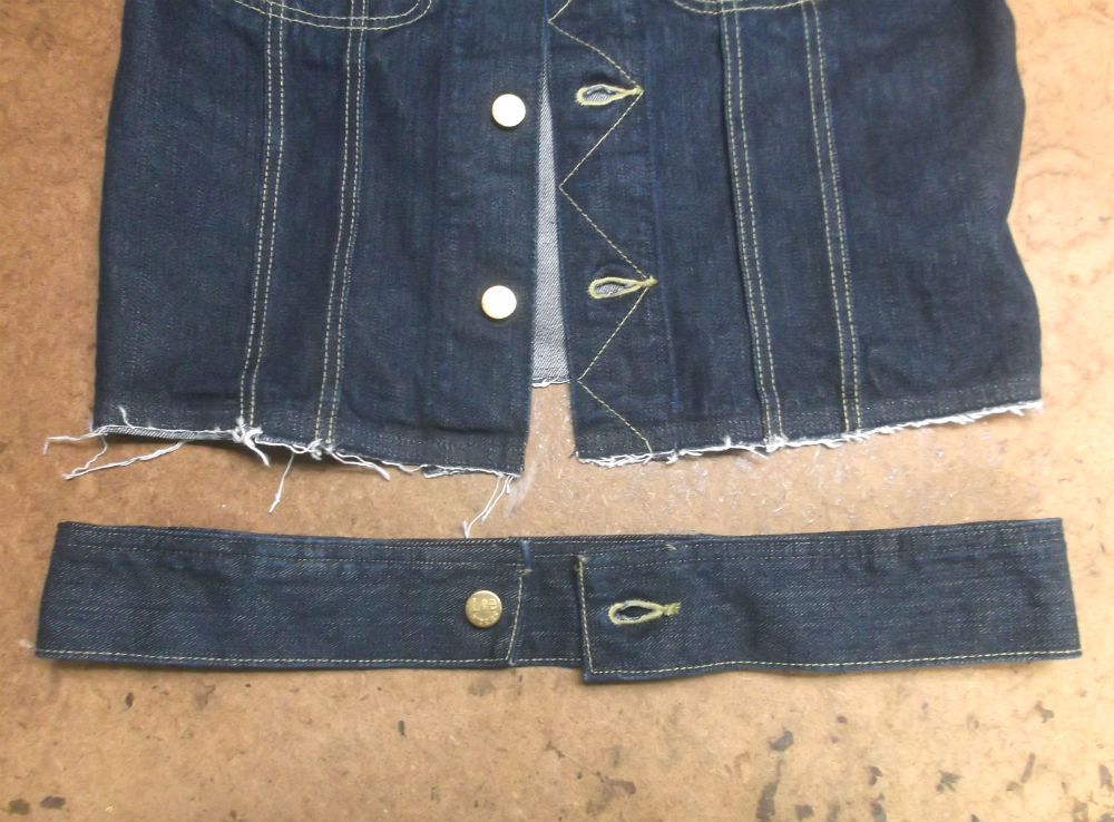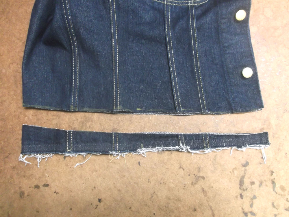 大きいサイズのリーのGジャンをお客さんの好みのサイズに小さくサイズしていきます。