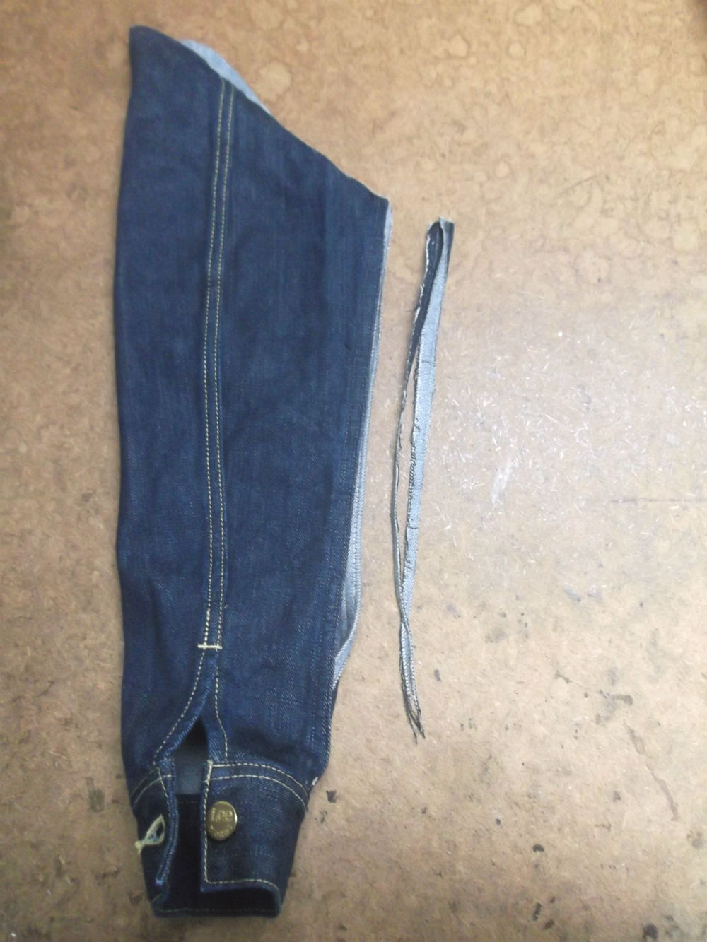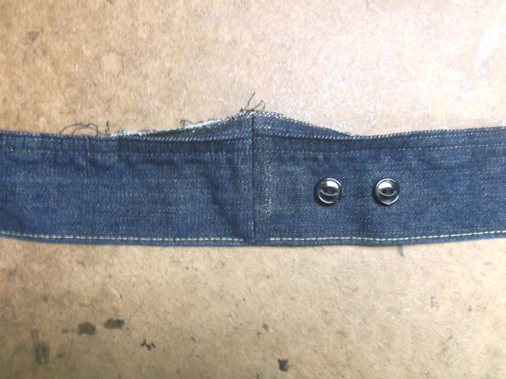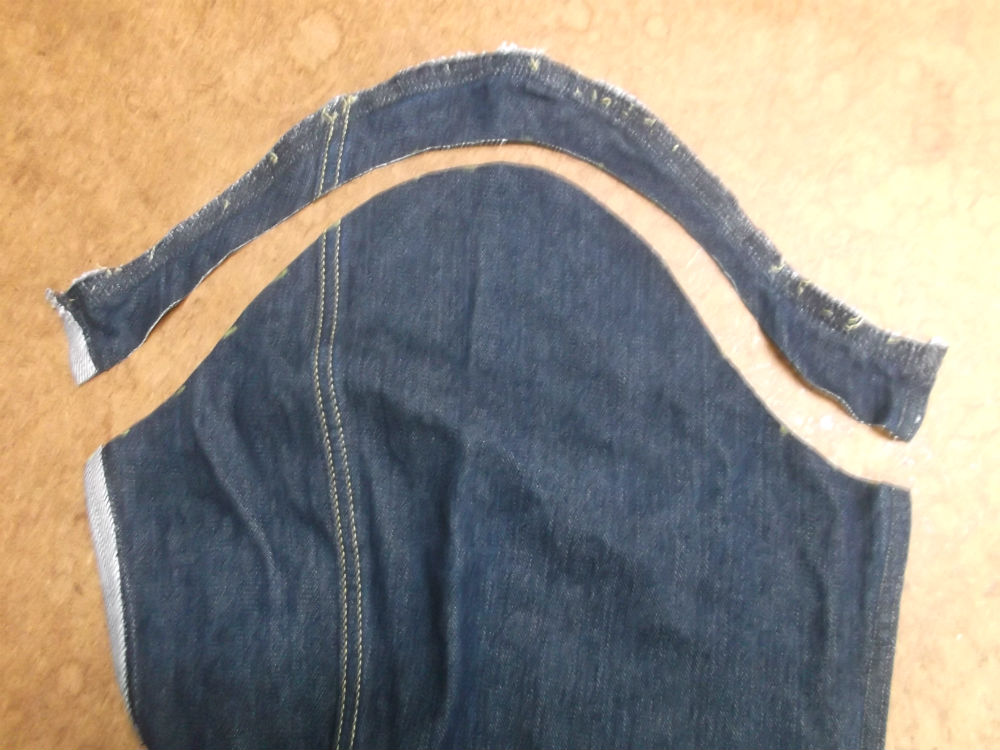 19枚目は帯の長さ分、デニム生地をカットした後の写真です。