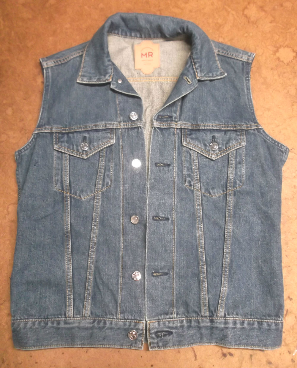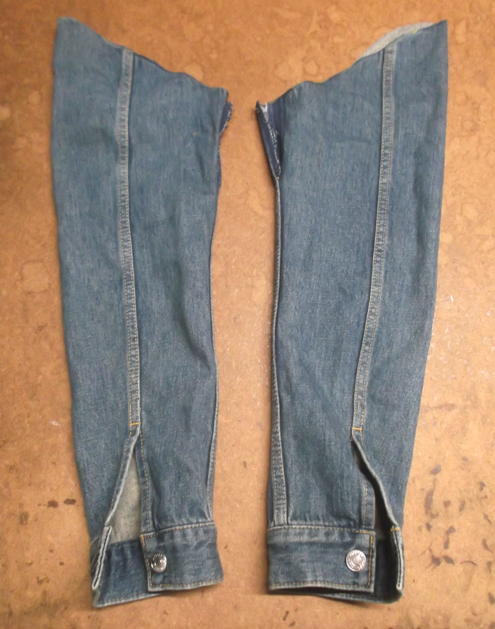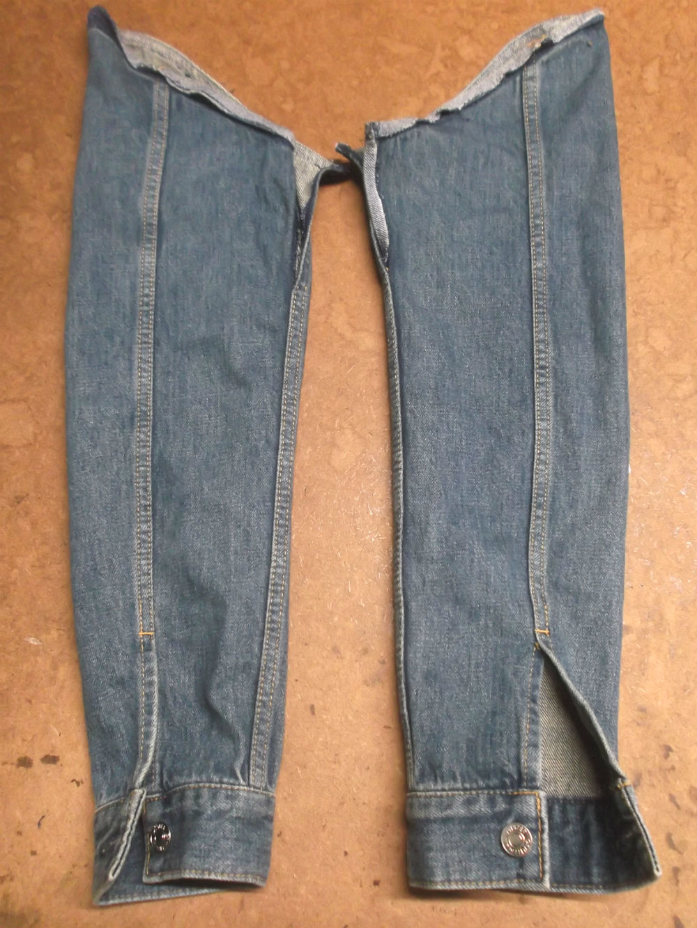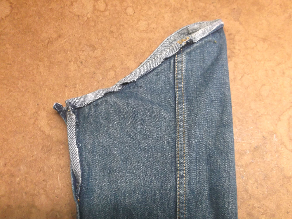 5枚目は袖山からデニム生地をカットして袖丈を短くした後の写真です。