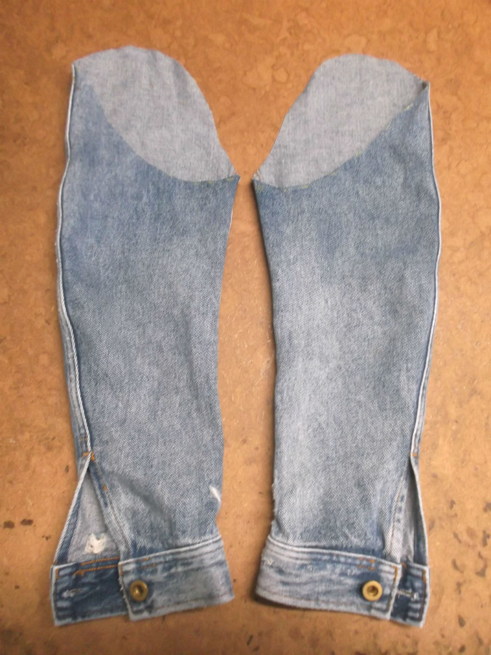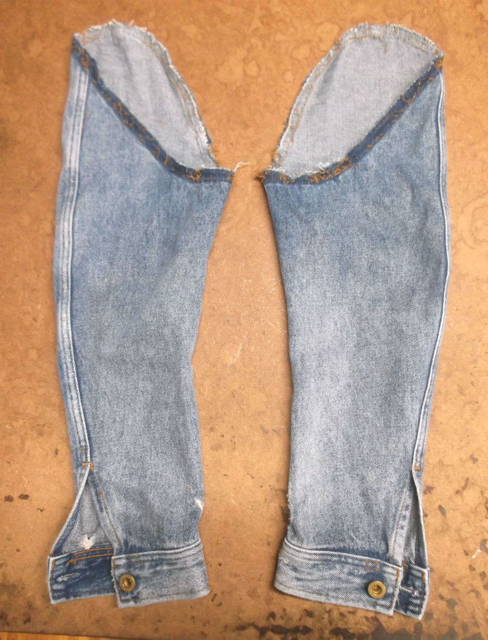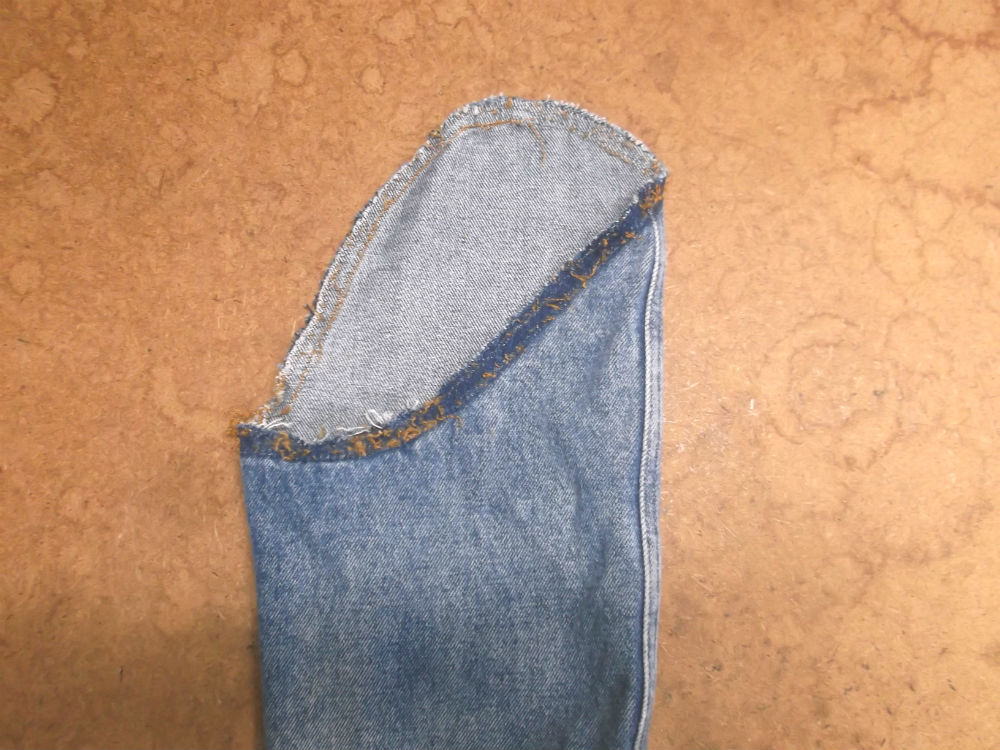 5枚目は袖山からデニム生地をカットして短くした後の写真です。