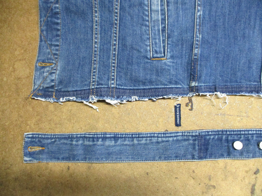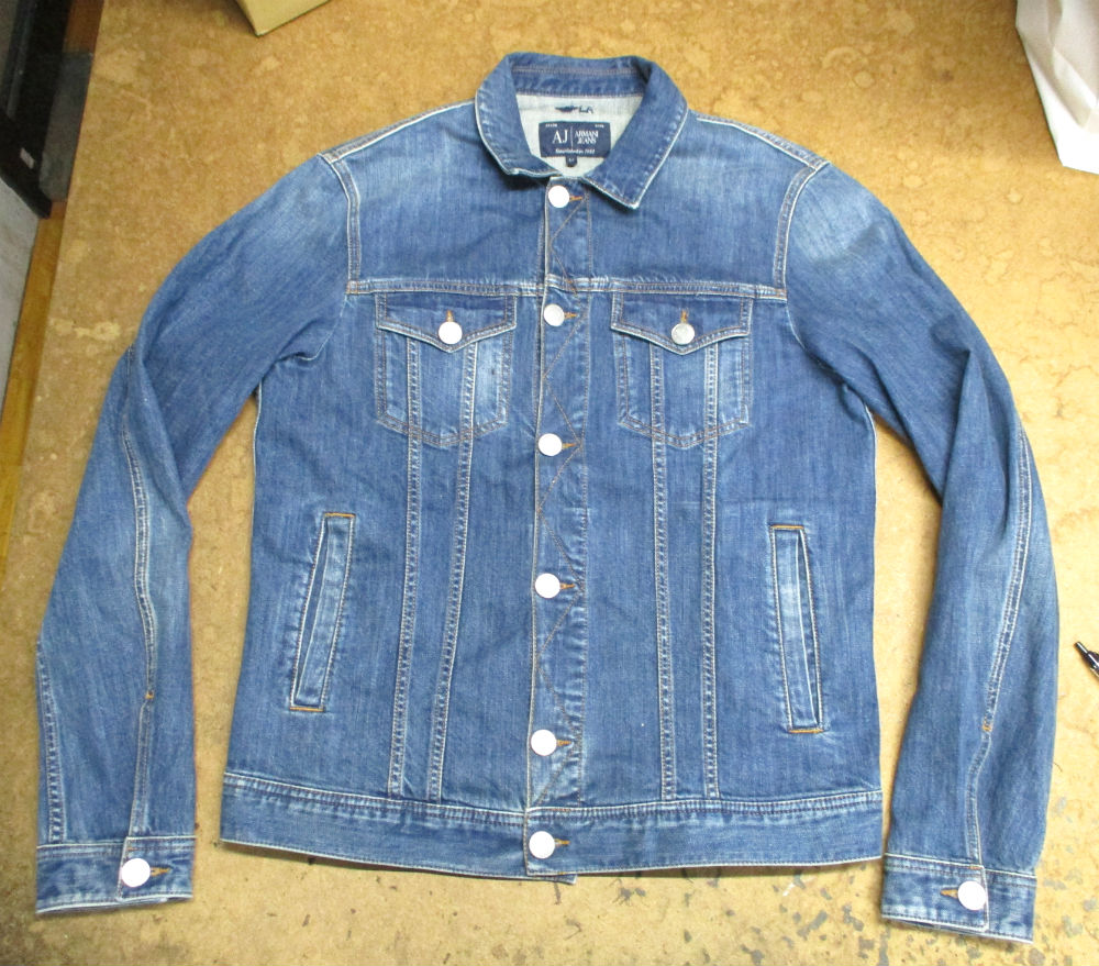 ブランドを気に入ってる大きいサイズのGジャンをお客さんの気に入ったジャケット見本でお借りして小さくリサイズ デニムジャケット寸法詰め直し