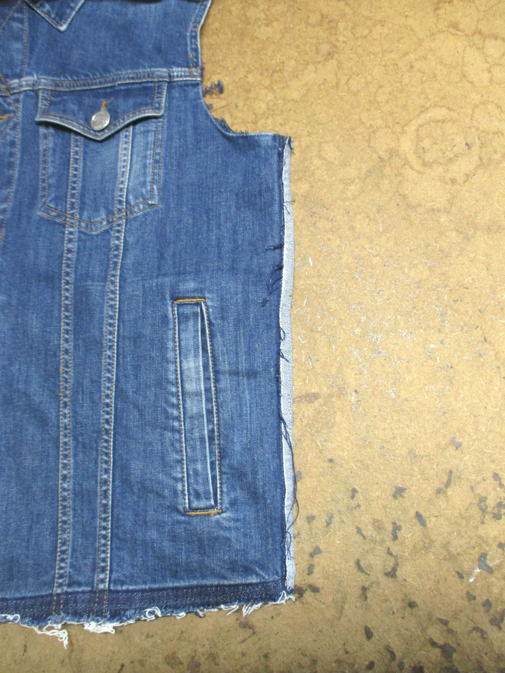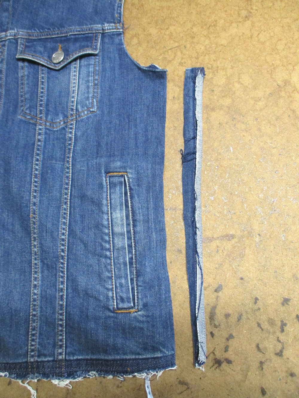 7枚目は前身ごろの脇から裾のサイドの生地をカットした後の写真です。
