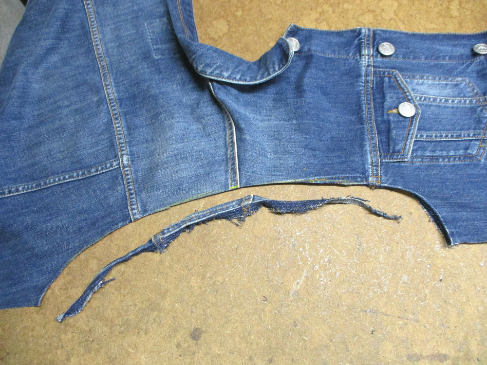 9枚目は後ろ身ごろの脇から裾のサイドの生地をカットした後の写真です。