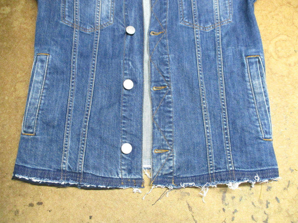 リーバイスの長い袖丈のGジャンをお客さんの好みの長さに短くリサイズして…