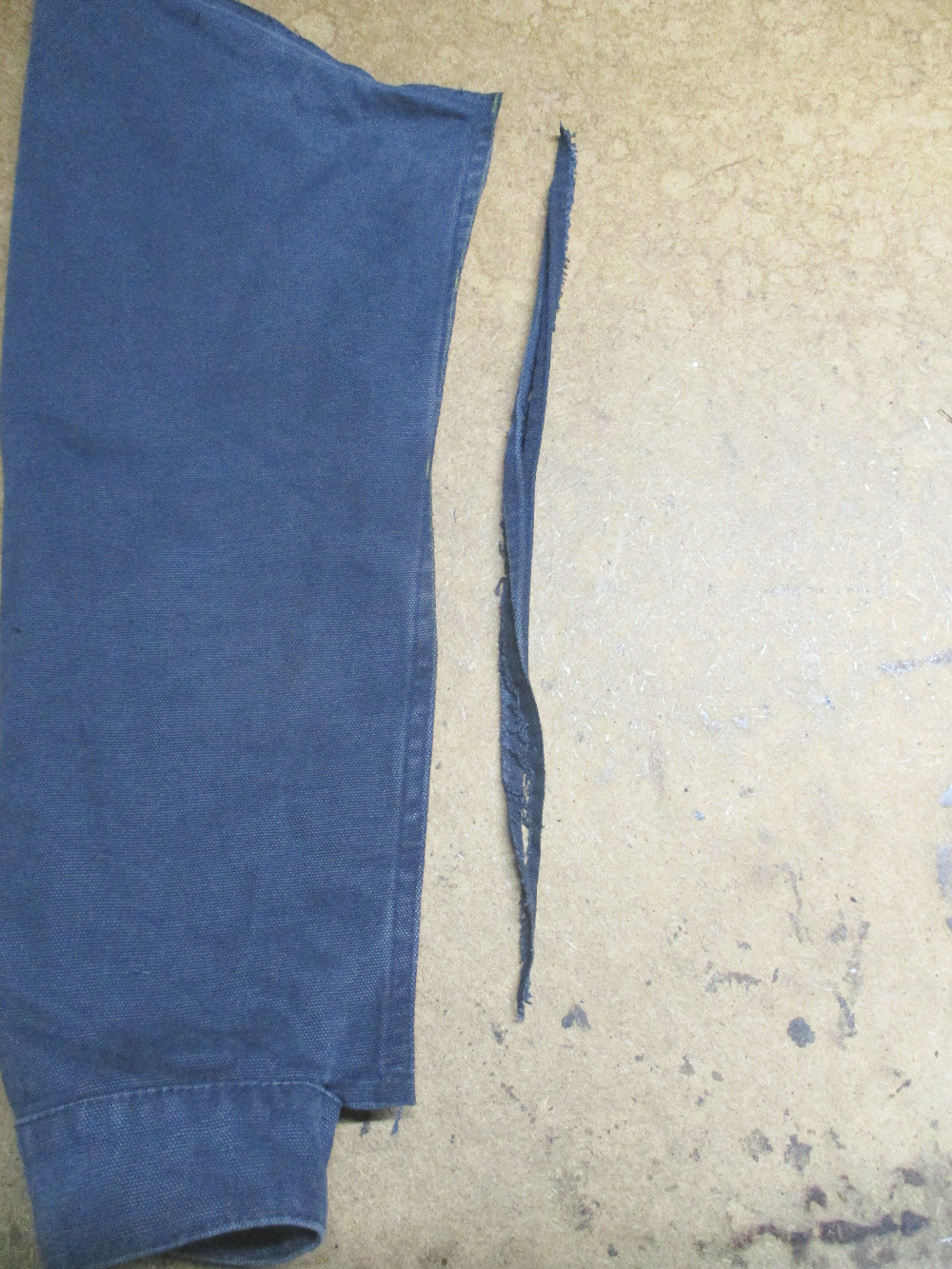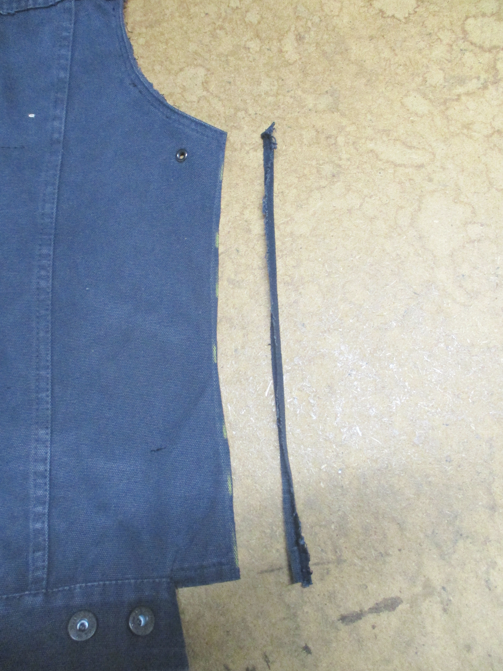 5枚目は前身ごろの脇から裾のサイドの生地をカットした写真です。