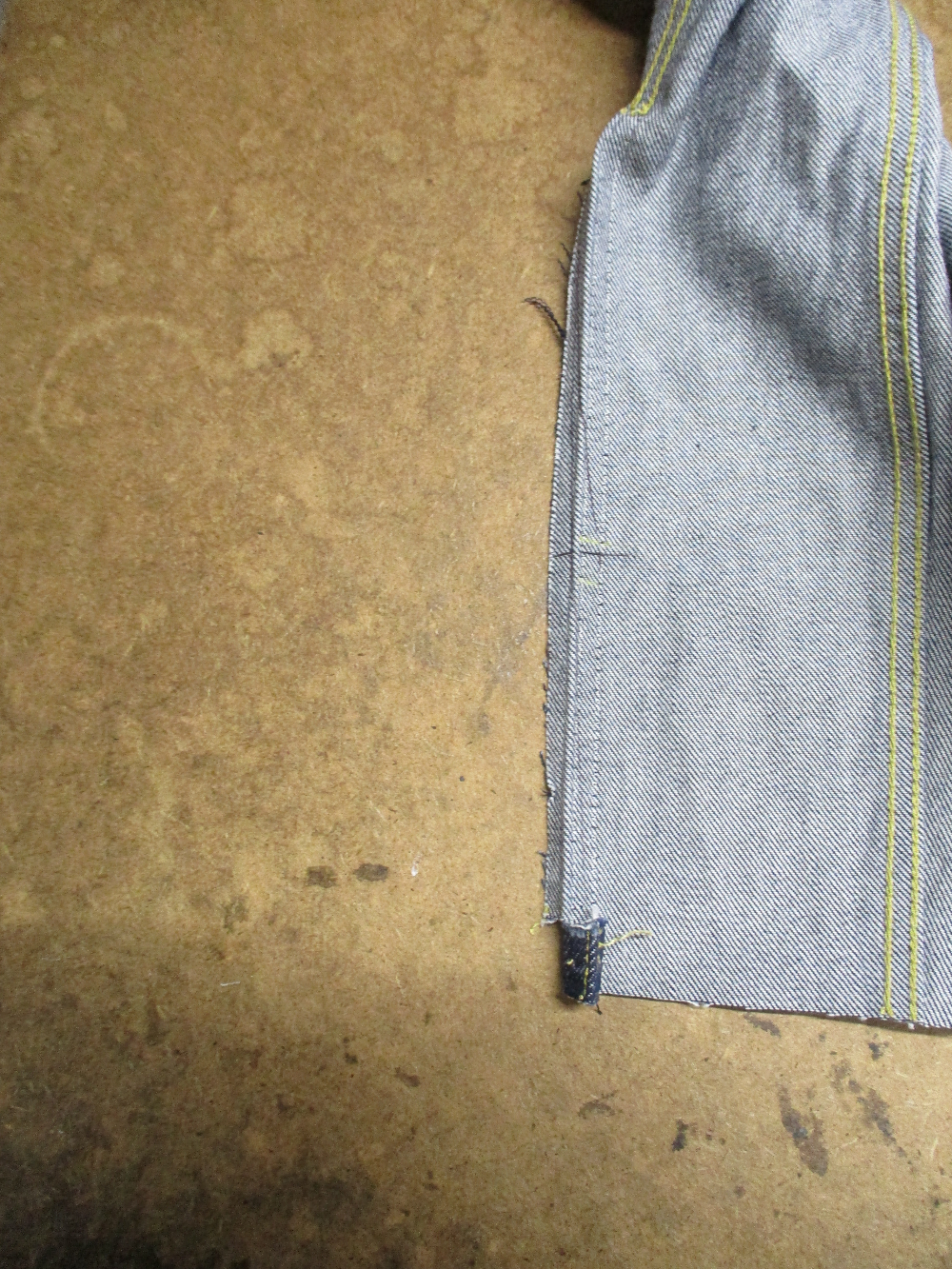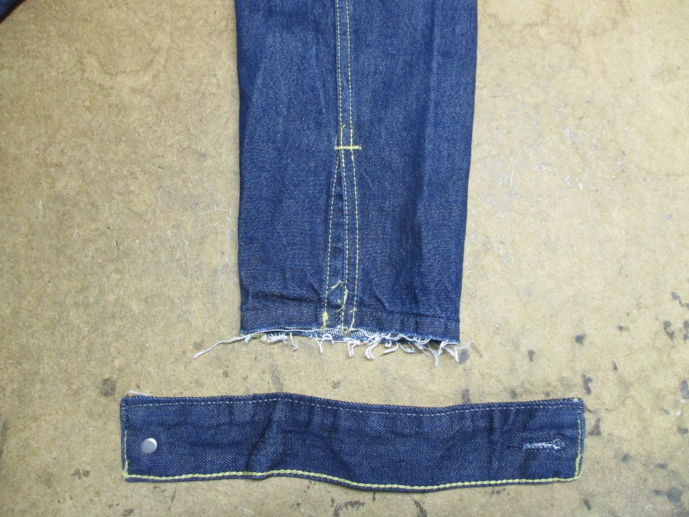 リーバイスのGジャンの長い袖丈をお客さんの好みの長さに短くリサイズしていきます。