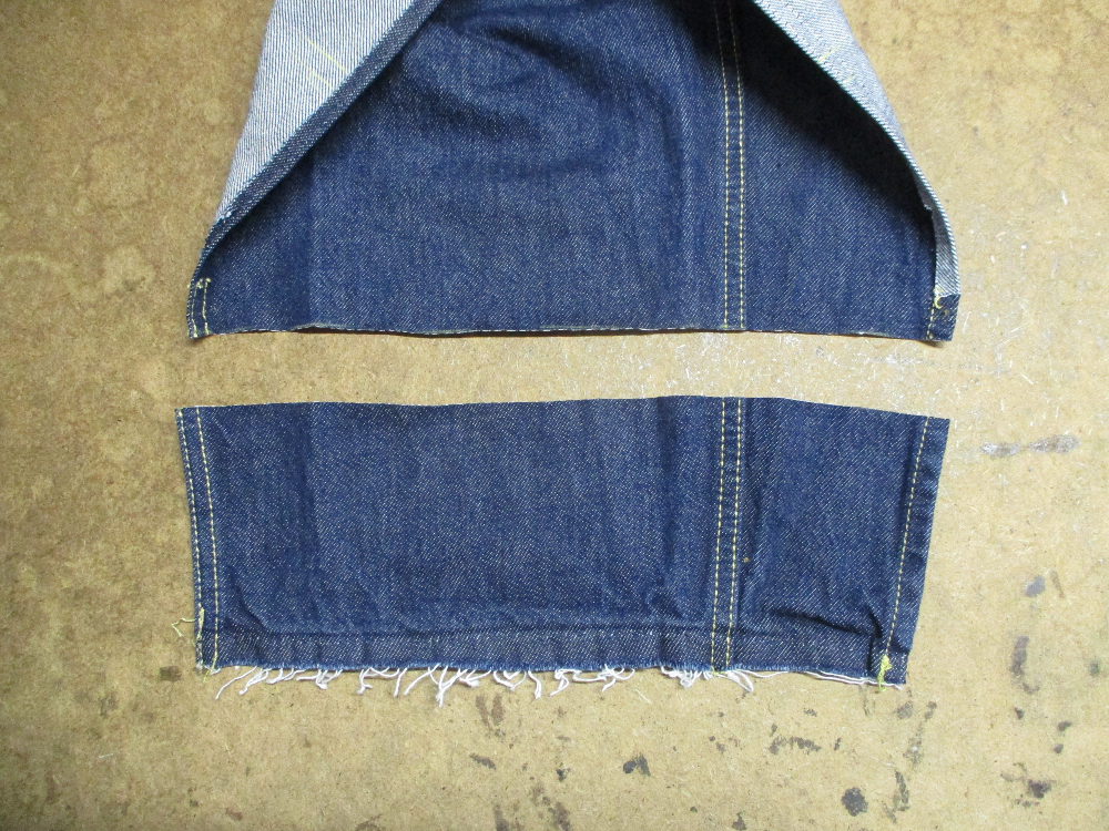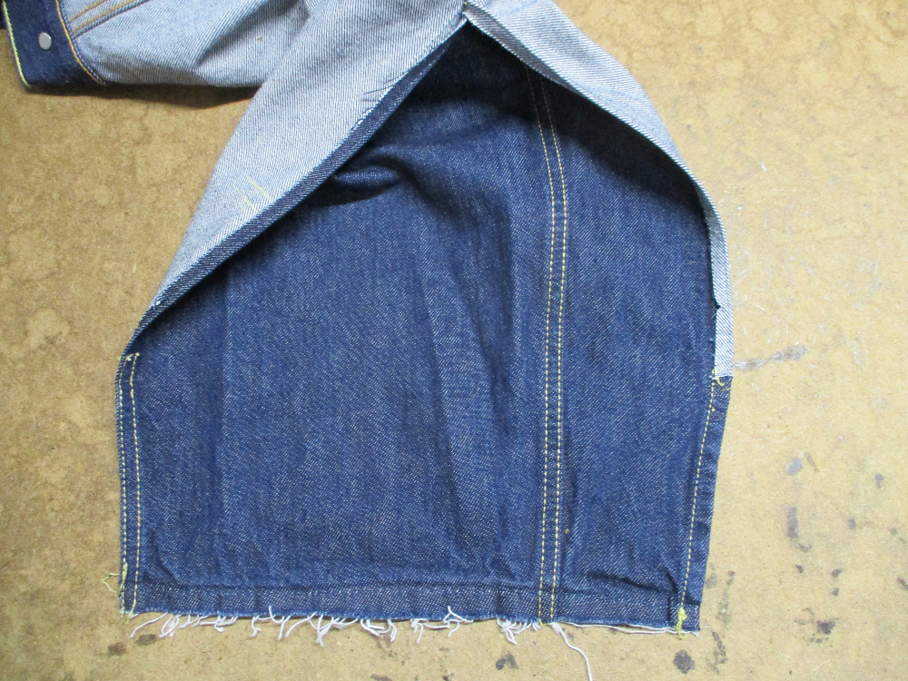 1枚目は神奈川県からの郵送のお客さんの袖先から袖丈を短くしていく前のGジャンです。