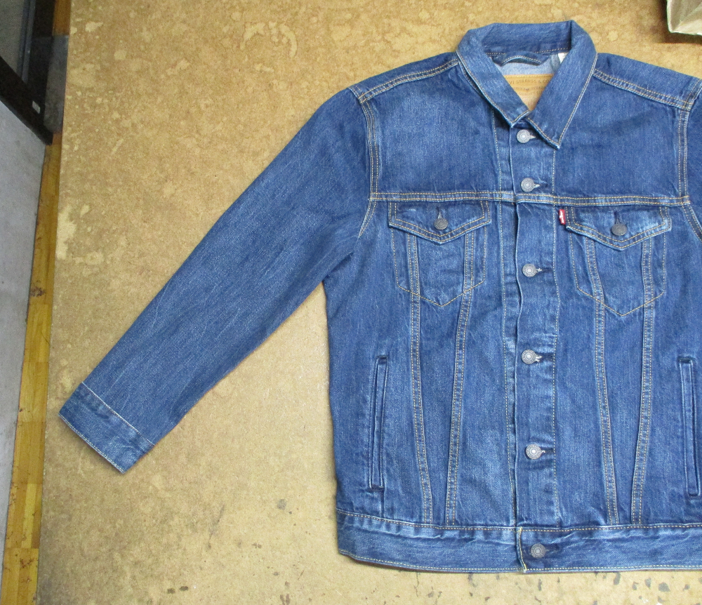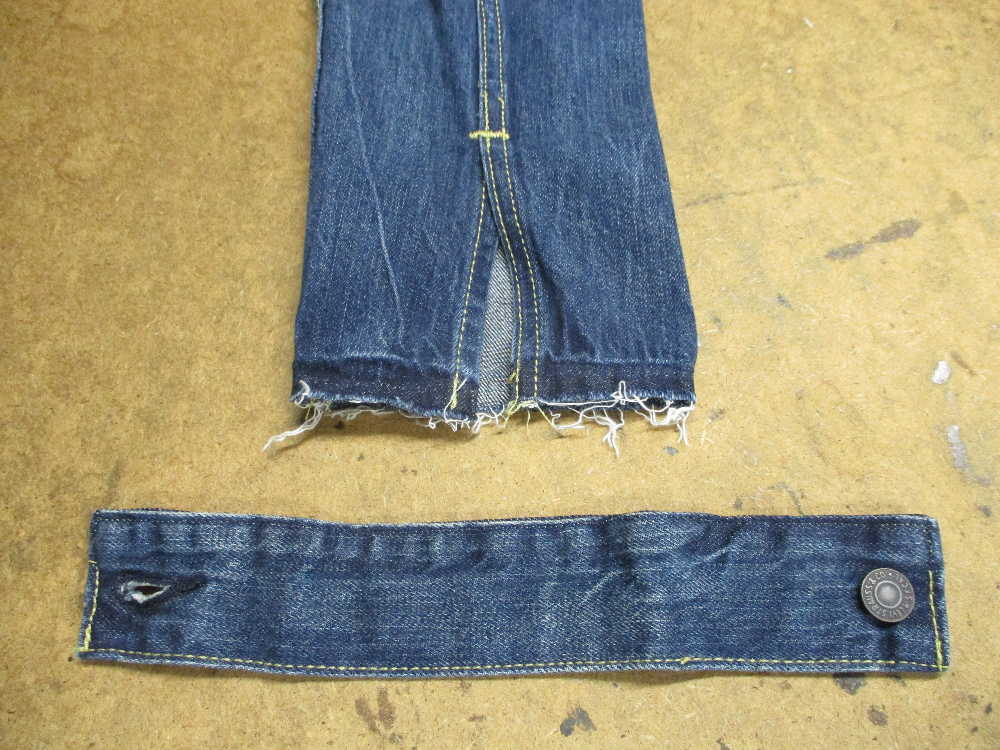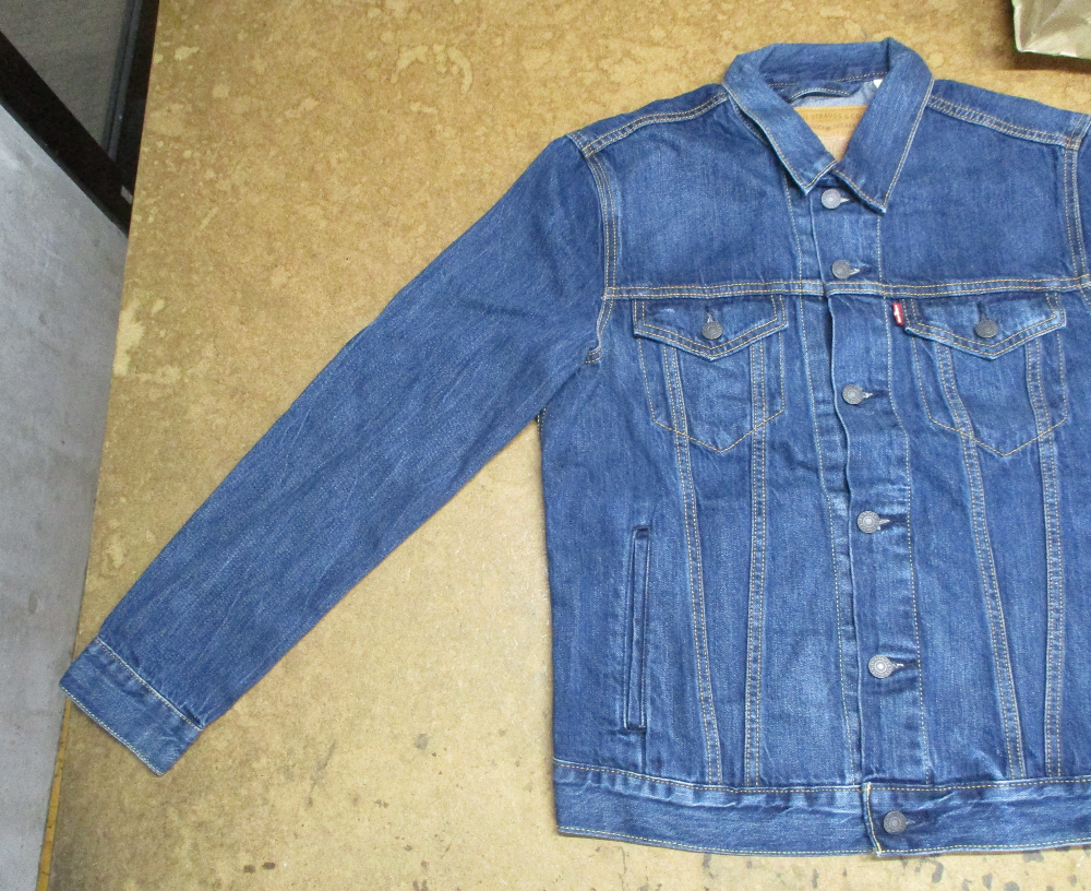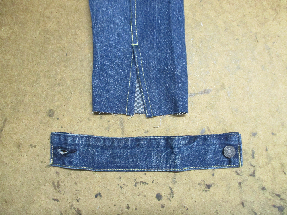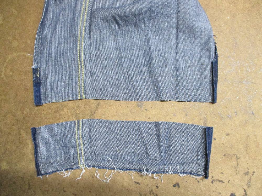 リーバイスの長い袖丈のGジャンをお客さんの好みの長さに短くリサイズしていきます。