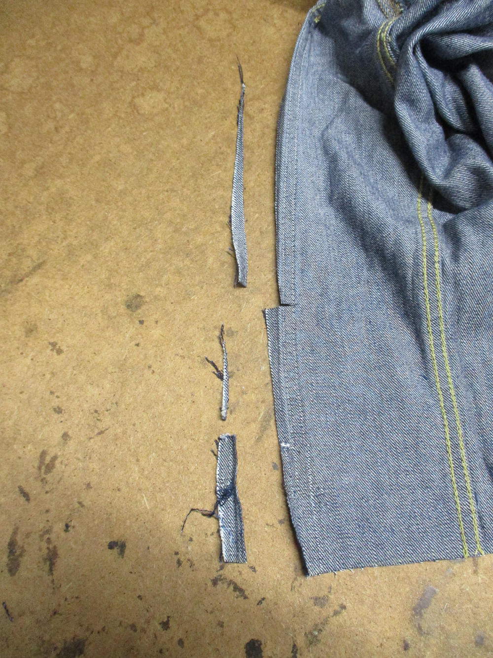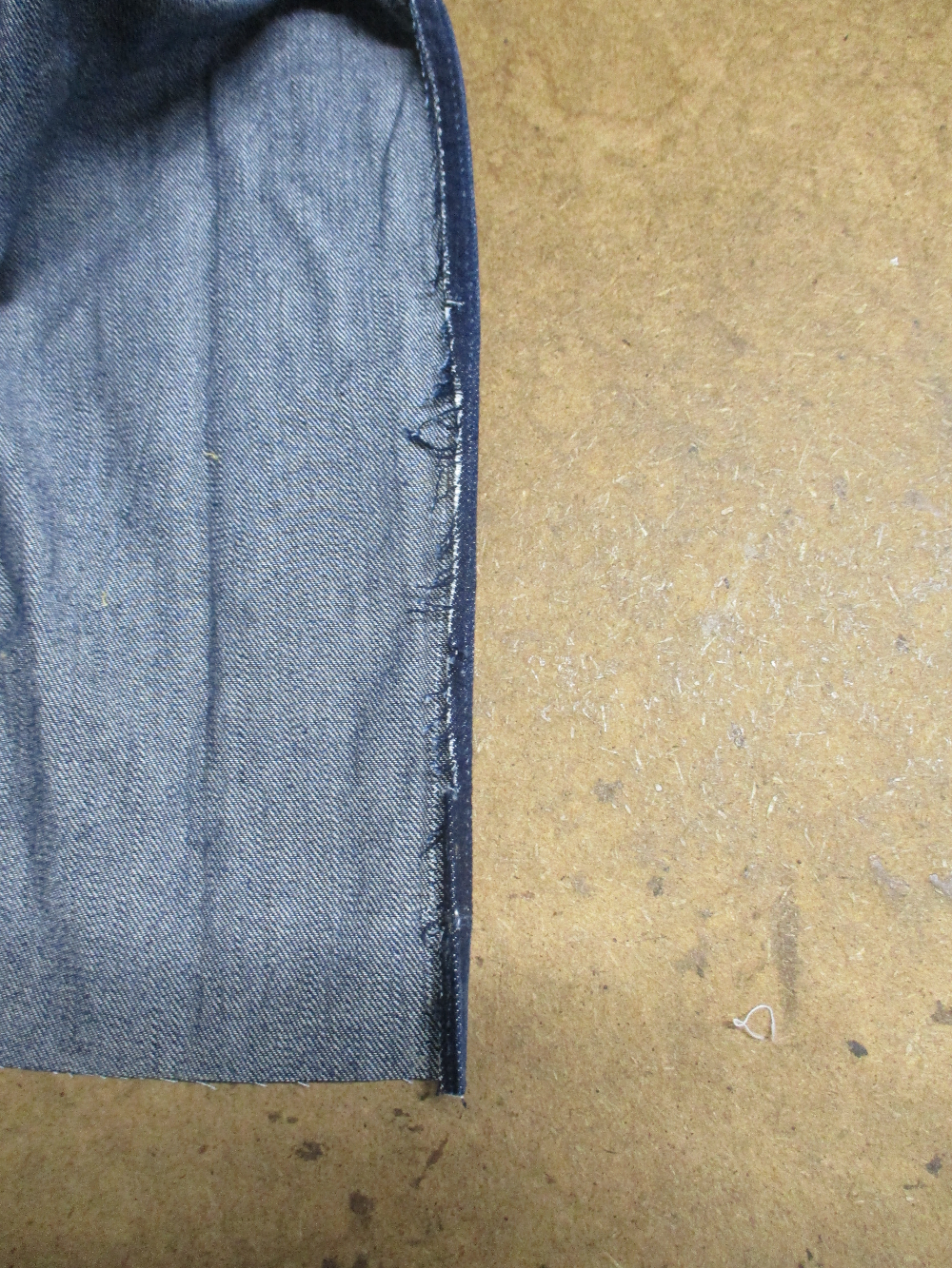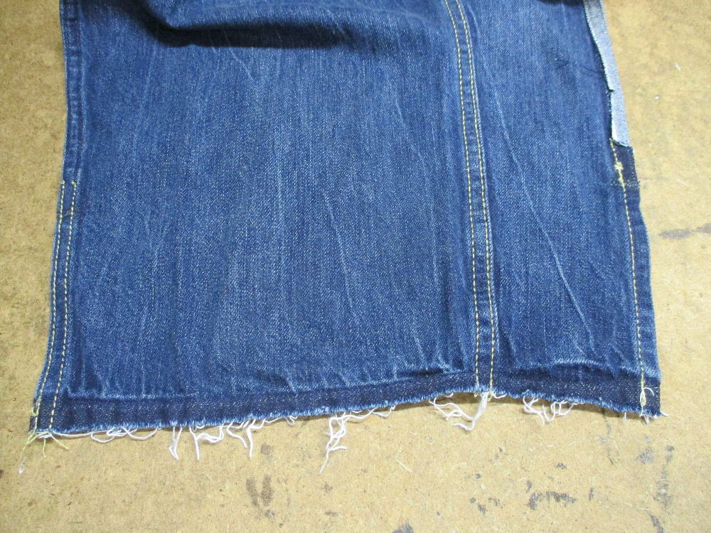 リーバイスの長い袖丈のGジャンをお客さんの好みの長さに短くリサイズしていきます。