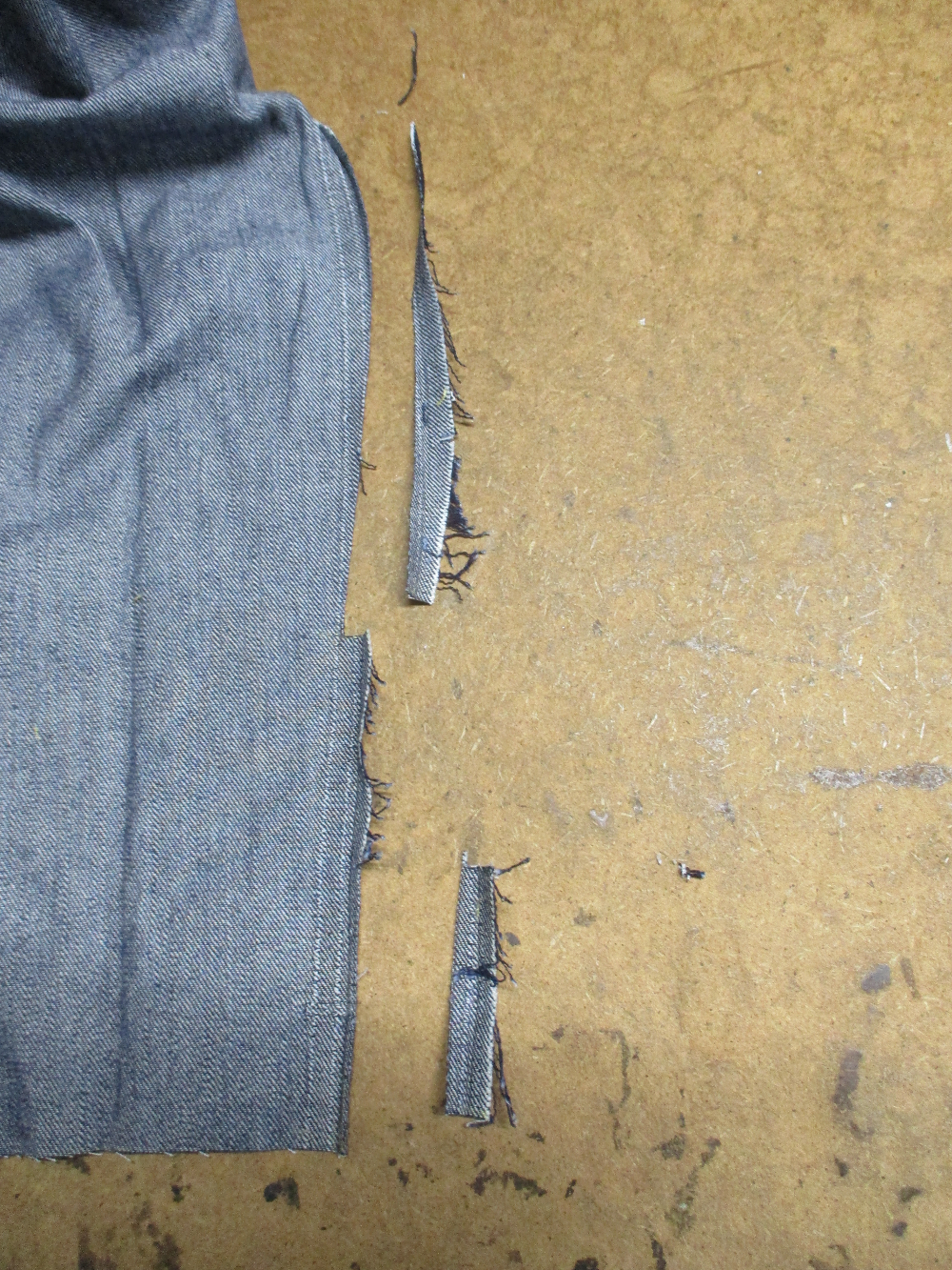 7枚目は袖先をカットしたことで袖先の幅が広がったのとスリットを新しく作り直すのでサイドの生地をカットしていきます。