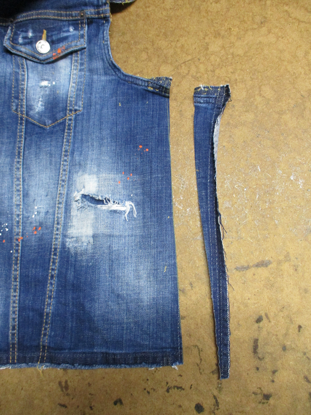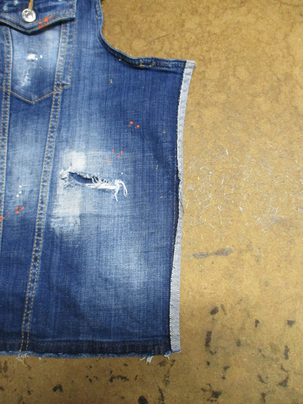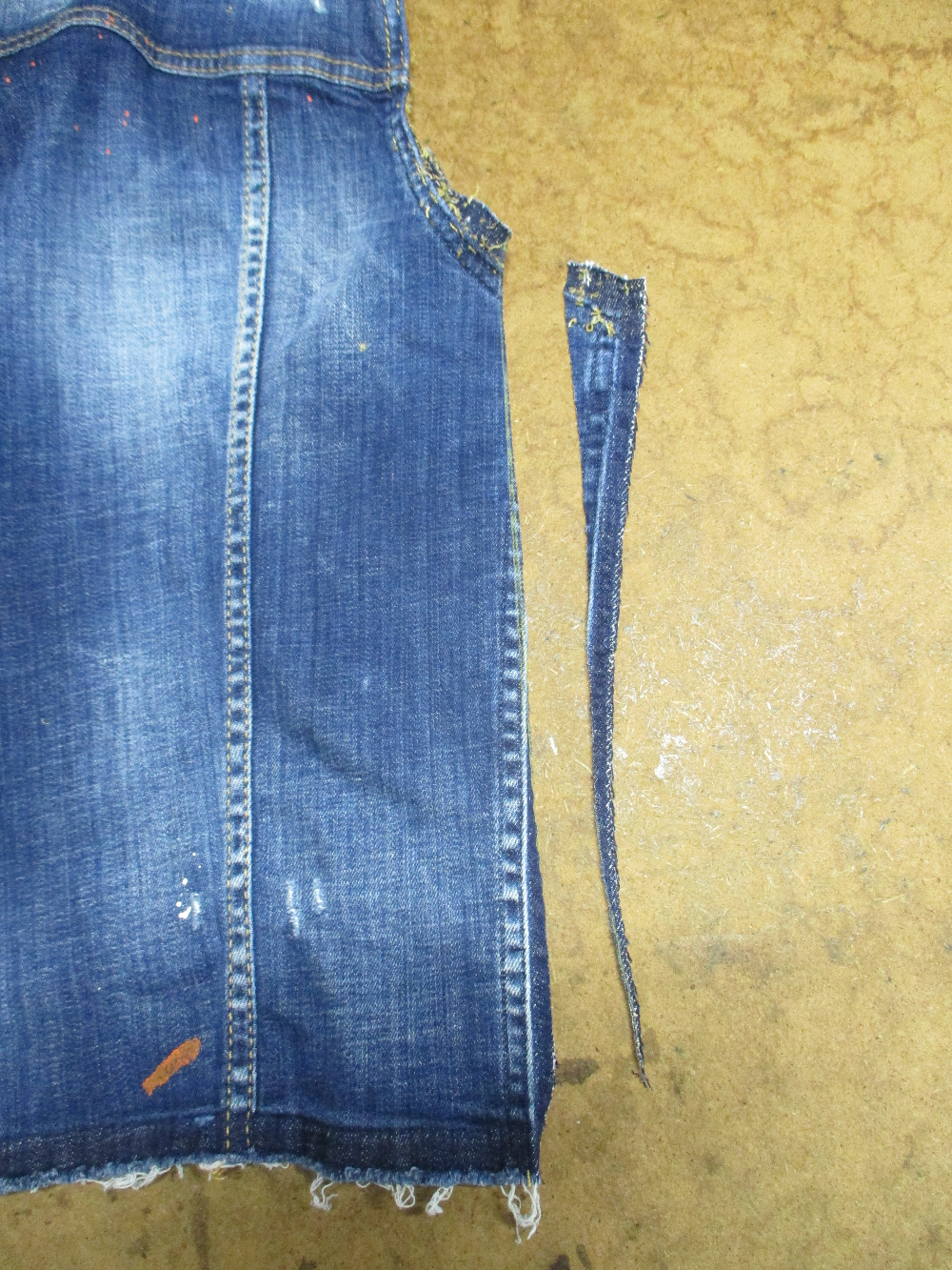 7枚目は前身ごろの脇から裾のサイドの生地をカットした写真です。