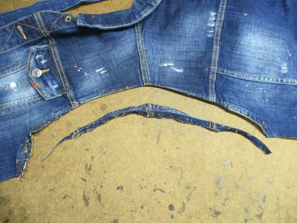 9枚目は後ろ身ごろの脇から裾のサイドの生地をカットした後です。
