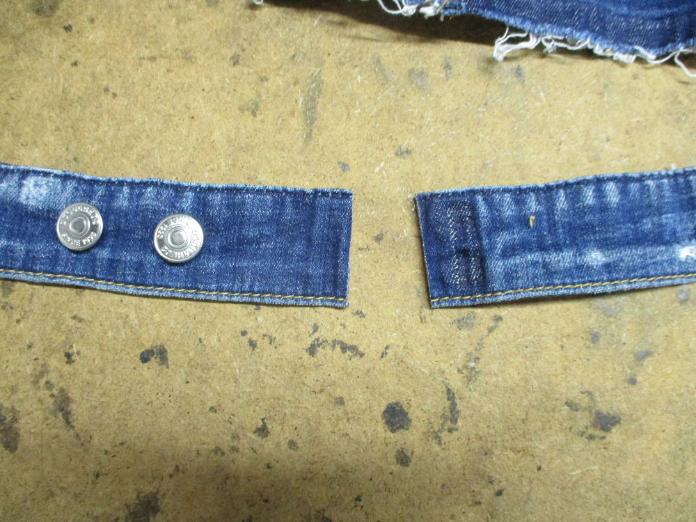 4枚目は脇から裾の縫い目をばらすのに、裾の帯のパーツをばらしていきます。