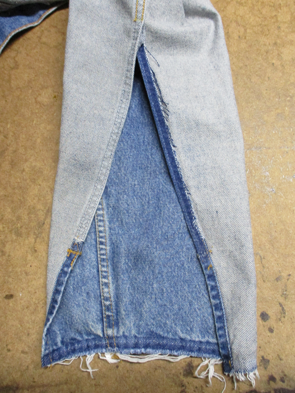 4枚目は袖先のデニムの生地をカットしますのでカフス上のスリットが短くなるので袖丈分、スリットを長く延長します。