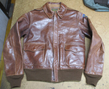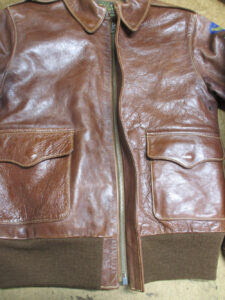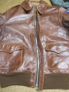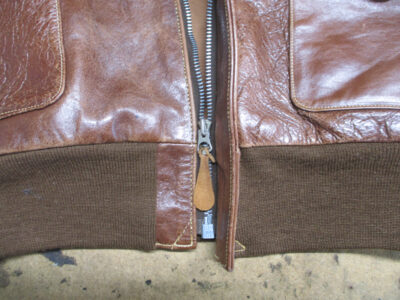 1枚目は来店されたお客さんのジッパーを新しく交換していく前のA-2フライトジャケットです。