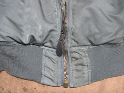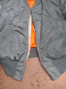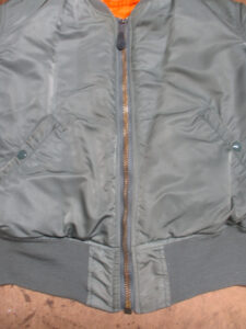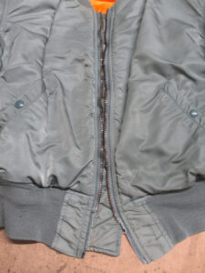 13枚目はMA-1フライトジャケットに取り付けた新しいジッパーの全体が見える写真です。
