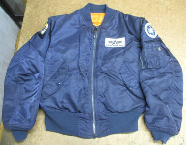 CWUフライトジャケットにお客さんの好みのワッペンを取り付けていきます…