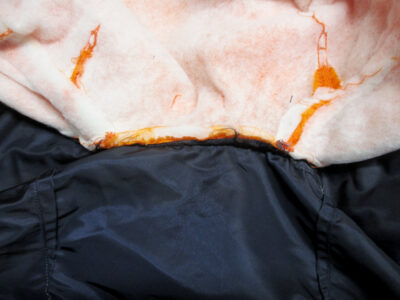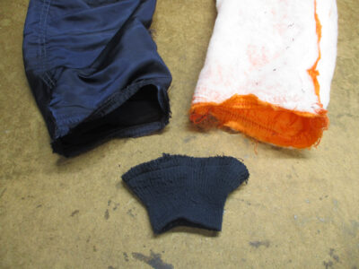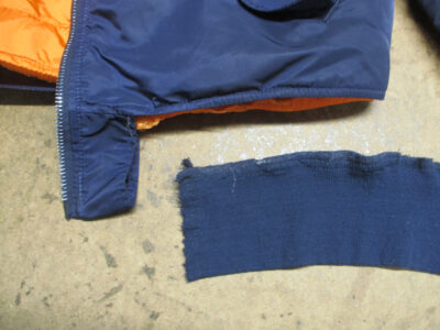 12枚目はL-2Aフライトジャケットから襟、両袖、腰回りのリブニットを取り外した写真です。