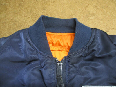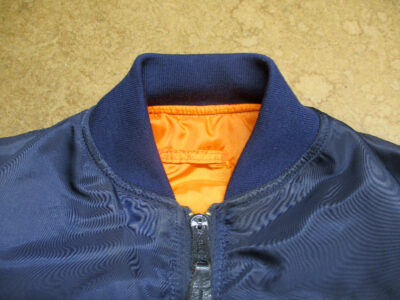 L-2Aフライトジャケットの襟、両袖、腰回りのリブニットを新しいものに交換していきます。