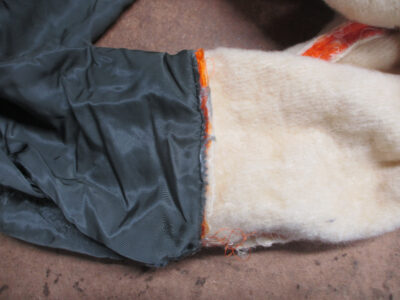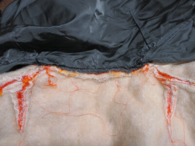 MA-1フライトジャケットの襟、両袖、腰回りのリブニットを新しく交換していきます。