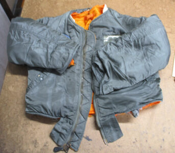 1枚目は埼玉県からの郵送のお客さんの襟、両袖、腰回りのリブニットを新しく交換していくMA-1フライトジャケットです。