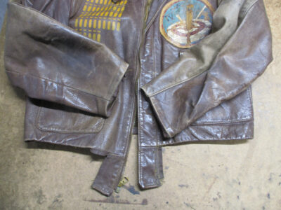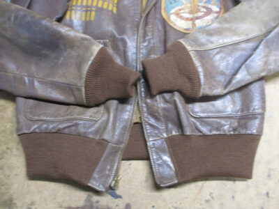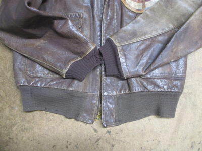 1枚目は来店されたお客さんの両袖と腰回りのリブニットを新しく交換するA-2フライトジャケットです。