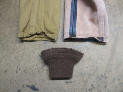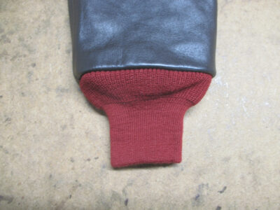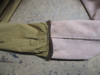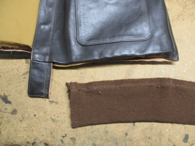 古くなったリブニットの交換と革パッチを交換A-2フライトジャケットに取り付け A-2リブ革パッチ縫い…