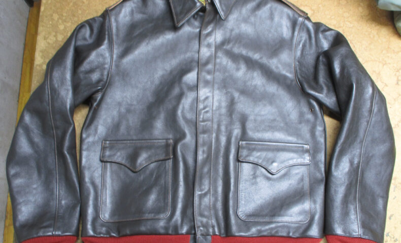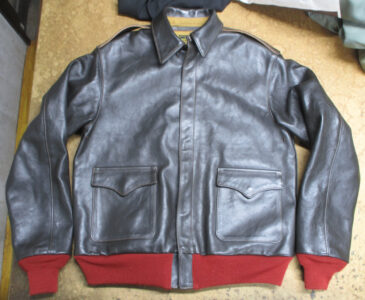 13枚目はA-2フライトジャケットに両袖と腰回りに赤リブを取り付けた写真です。