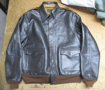1枚目は京都府からの郵送のお客さんの両袖と腰回りのリブニットを新しく交換していくA-2フライトジャケットです。