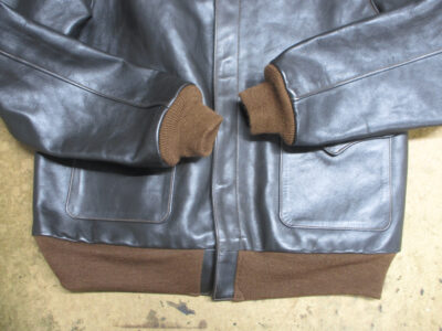 A-2フライトジャケットの両袖と腰回りのリブニットを新しく交換していきます。