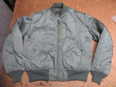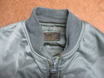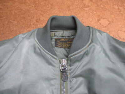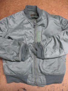 1枚目は滋賀県からの郵送のお客さんの襟、両袖、腰回りのリブニットを新しく交換していく前のMA-1フライトジャケットです。