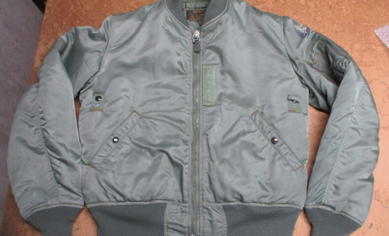 17枚目はMA-1フライトジャケットに襟、両袖、腰回りのリブニットを新しく取り付けた写真です。