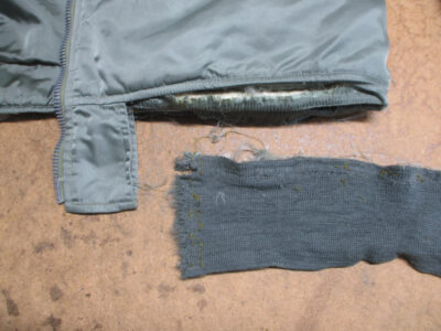 12枚目はMA-1フライトジャケットから襟、両袖、腰回りのリブニットを取り外した写真です。