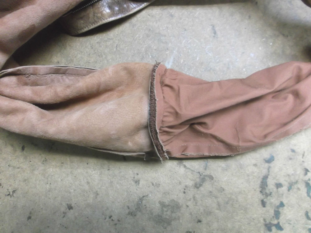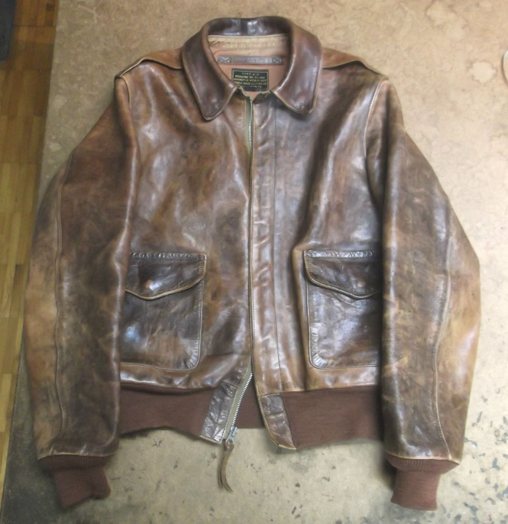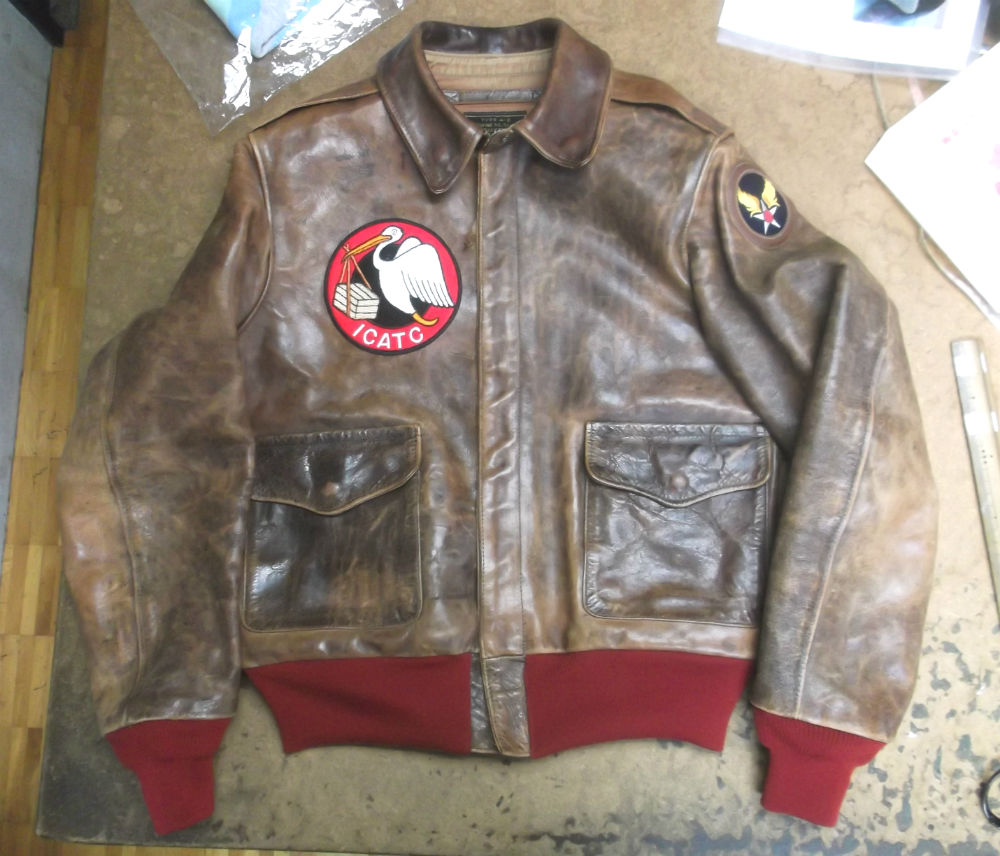 1枚目は袖と腰回りを赤リブに交換するのとワッペンを取り付けていく前のA-2フライトジャケットです。